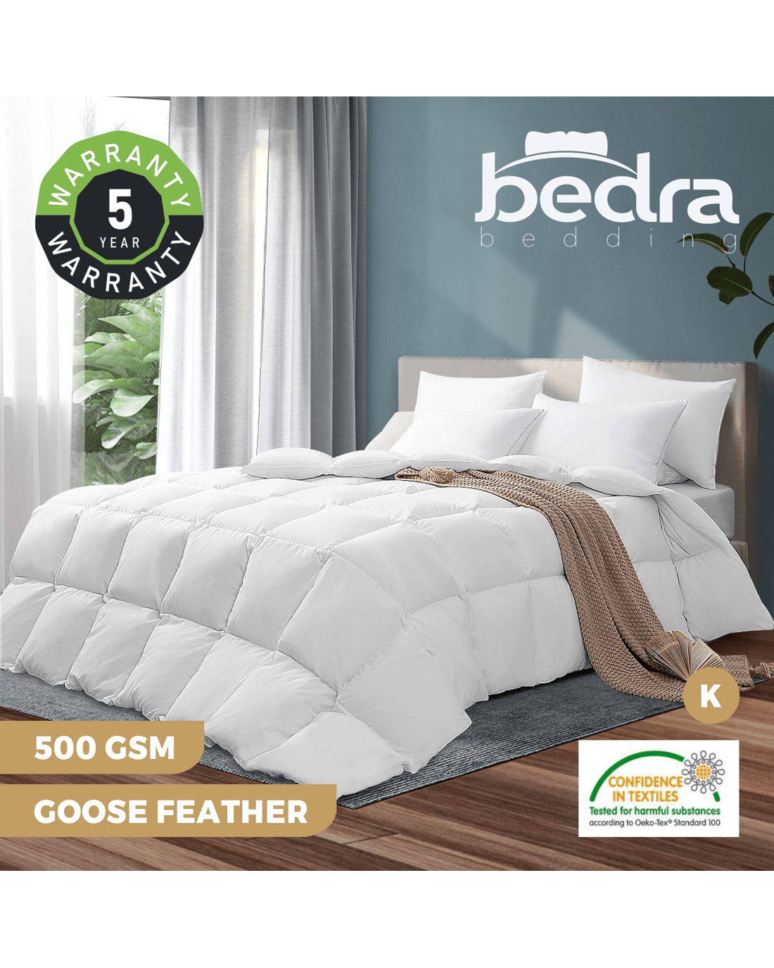 Bedra Bedding 500GSM King Goose Down Feather Quilt Duvet Doona All Season - White