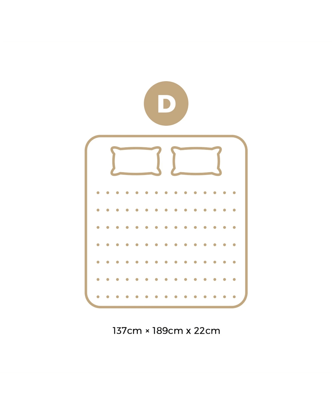 Featuring a very stable bonnell spring system, our mattress is designed with a 7-layer structure to ensure its durability and long-lasting use. The 6-turn coil system has been proven time and again to offer exceptional support, and our spring mattress provides a full body support so that you awake refreshed and revitalised. The mattress also uses a CertiPUR-US® certified foam to ensure that no harmful elements are present in its production. And unlike our thinner competitors, our bonnell spring mattress is 22cm thick to provide a superior level of medium-firm softness that so many of our customers desire.