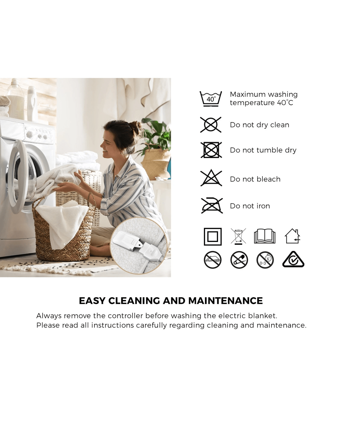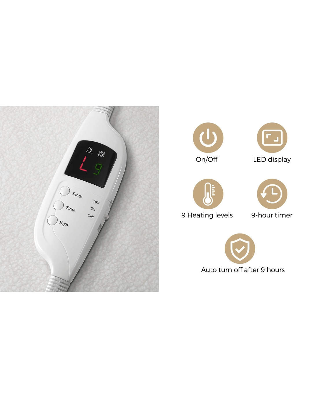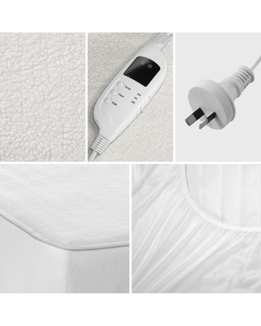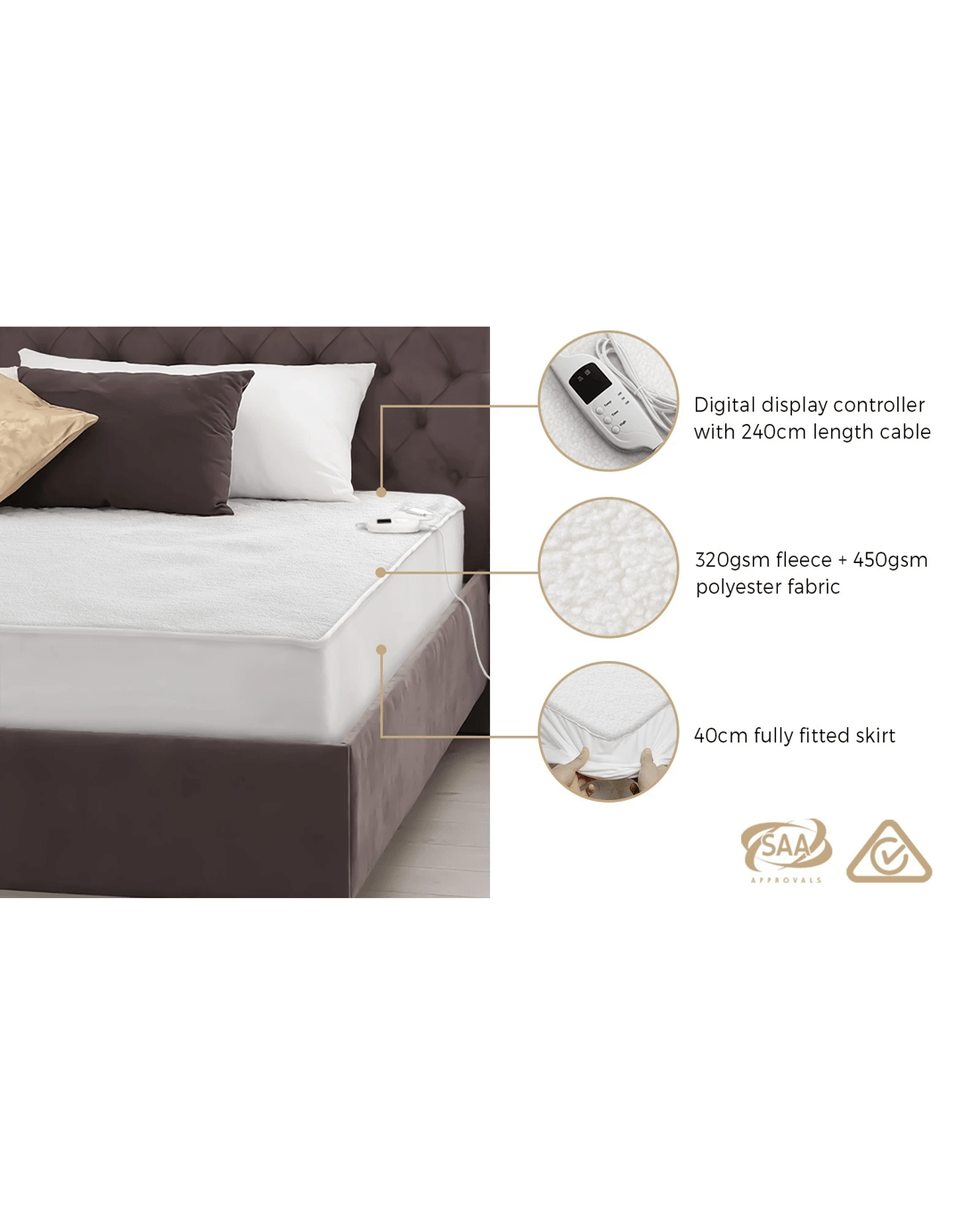 Bedra Bedding Electric Blanket Washable Fleece Heated Fully Fitted Winter Pad Queen - Queen Bed - White