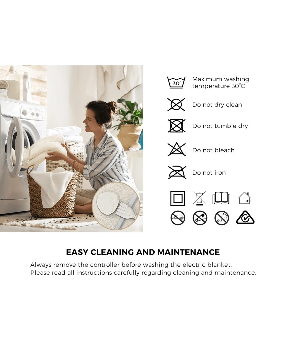 Time for a clean? Just detach the controller and pop the blanket into the washing machine in accordance with its washing instructions. Available in a variety of sizes from single to king with an Australian standard plug, the Bedra Bedding Polyester Electric Blanket is the perfect choice for warmer and comfortable sleep at all times.