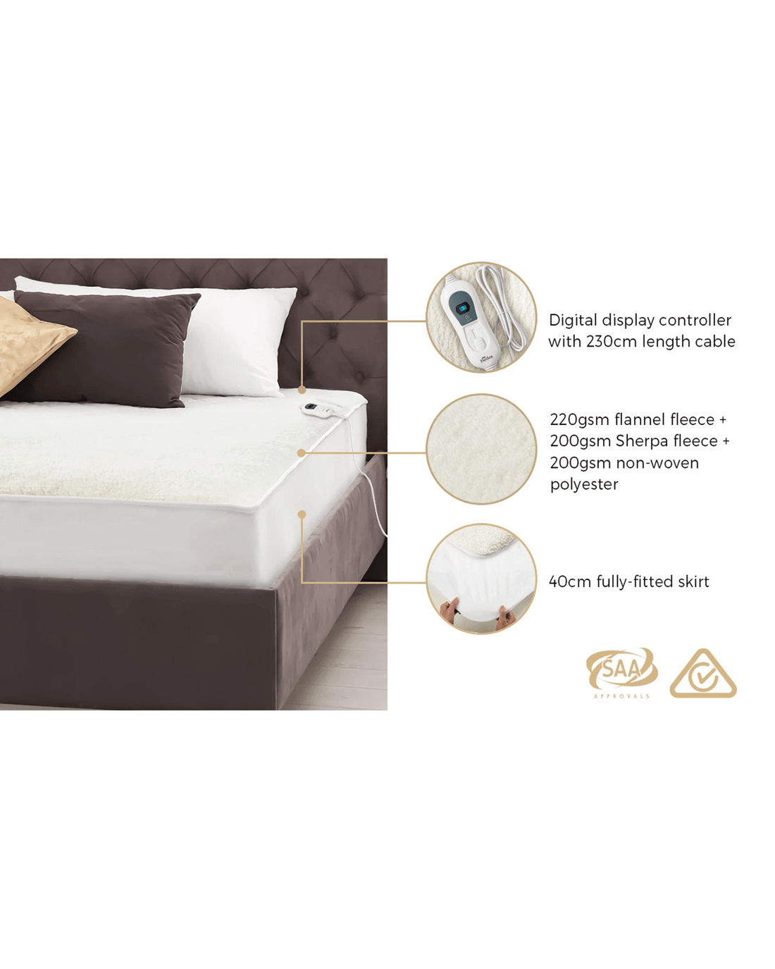 Sold by Kamprad's Oikos 1943Bedra Bedding Electric Heated Blanket Fully Fitted Fleece Underlay Winter Pad Single - Single Bed - White