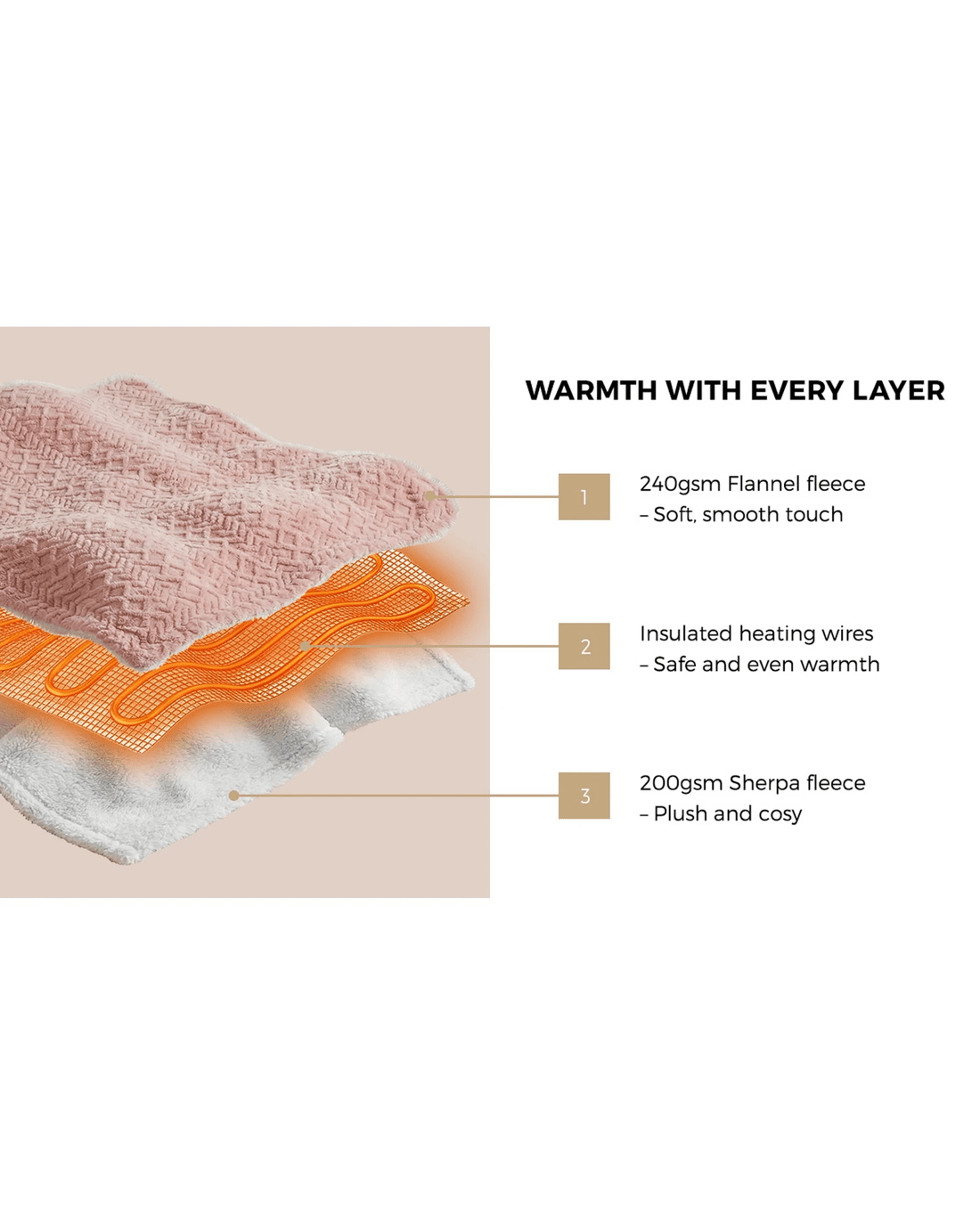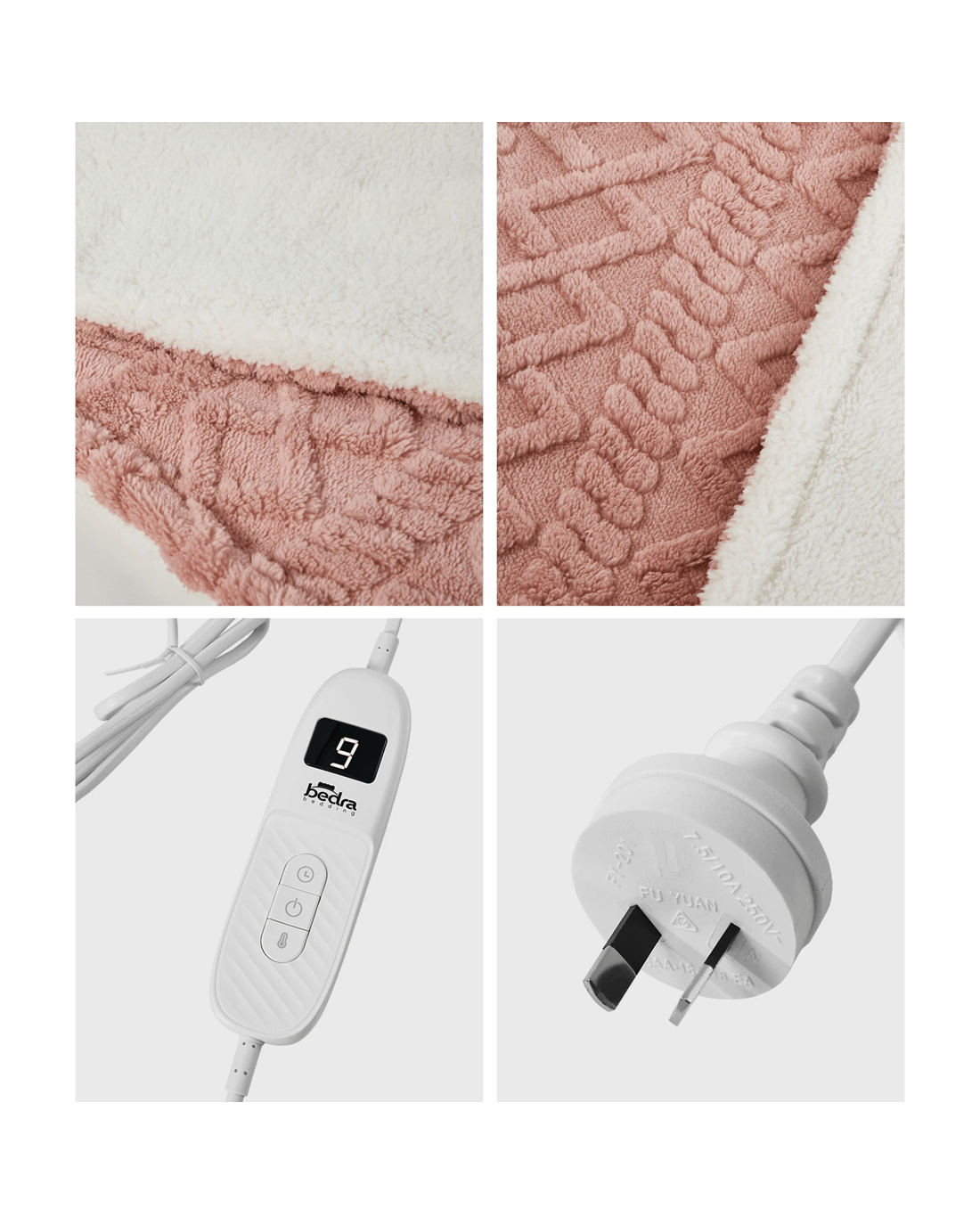 Sold by Kamprad's Oikos 1943Bedra Bedding Electric Throw Rug Dual Side Heated Blanket Flannel&Sherpa 3D Square Pattern - Single Bed - Pink