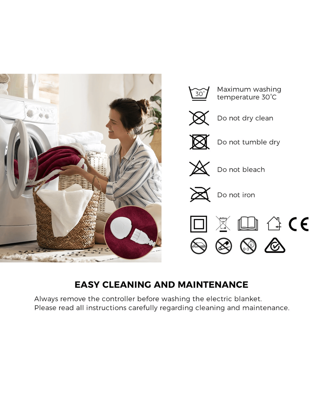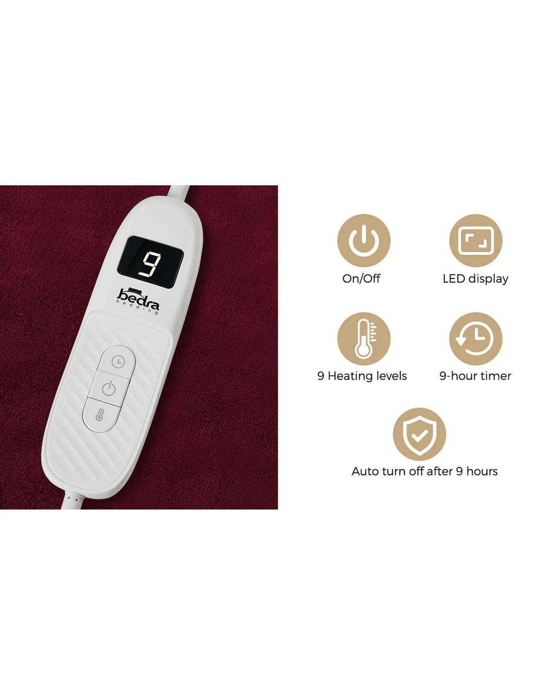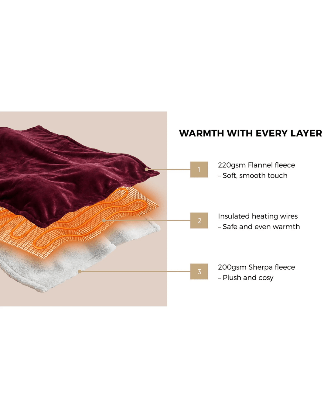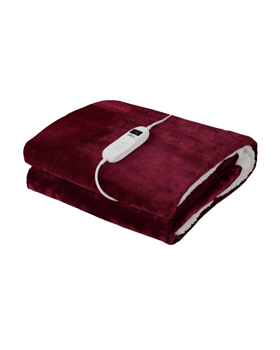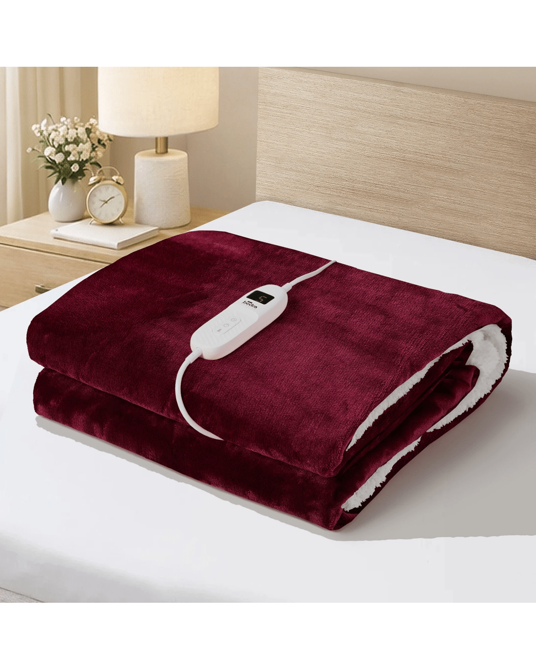 Sold by Kamprad's Oikos 1943Bedra Bedding Electric Throw Rug Dual Side Heated Blanket Flannel&Sherpa - Single Bed - Burgundy