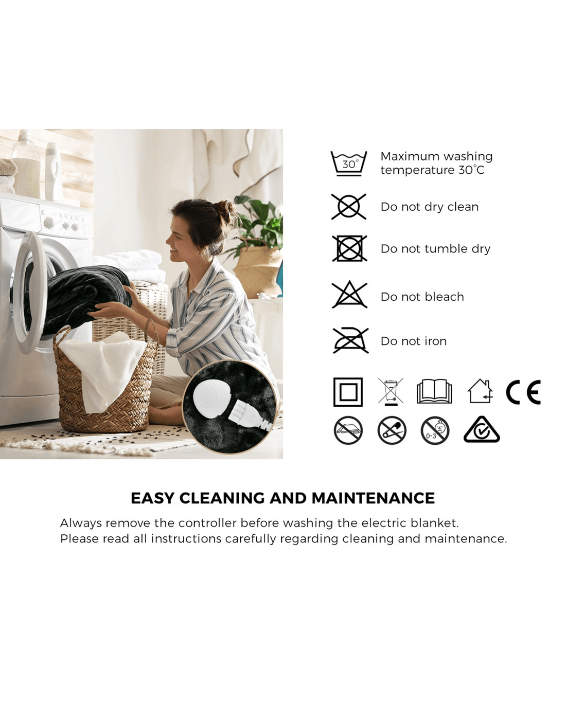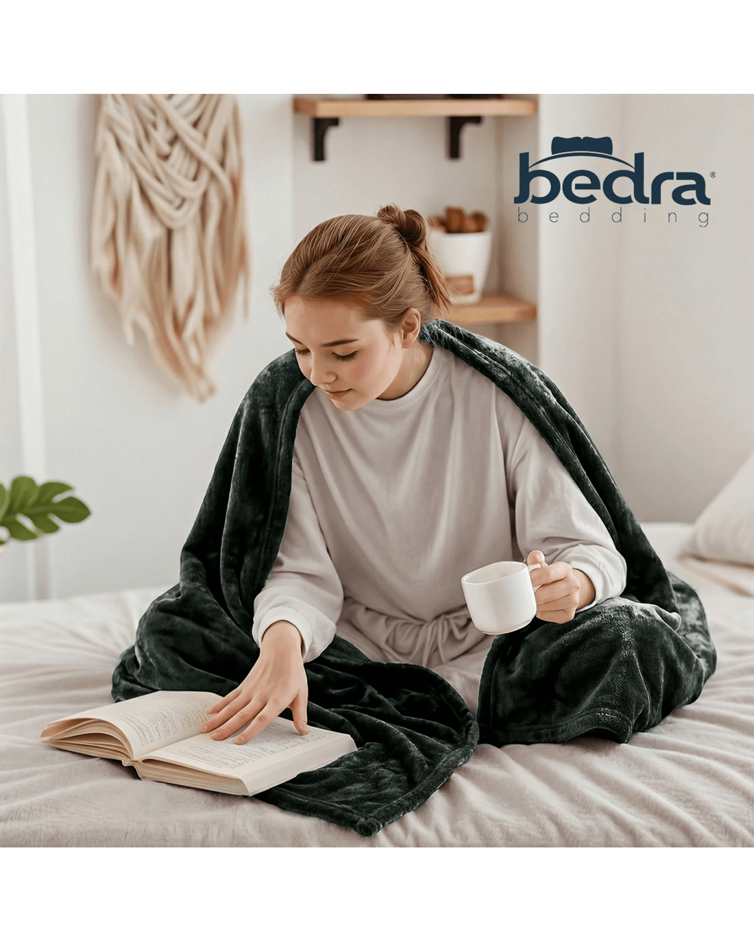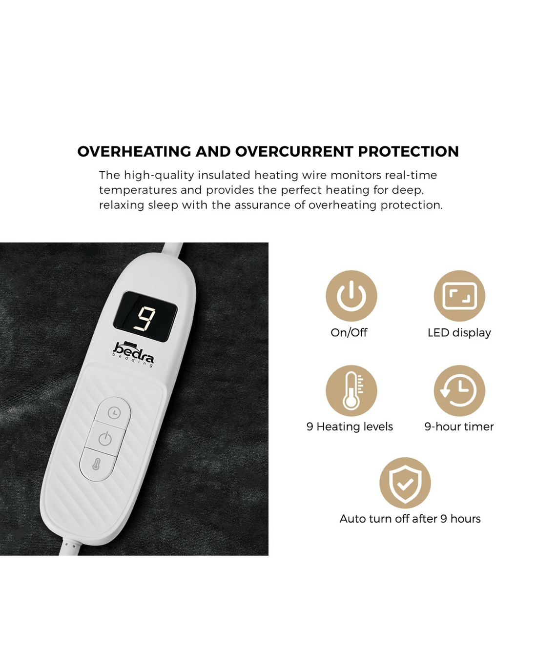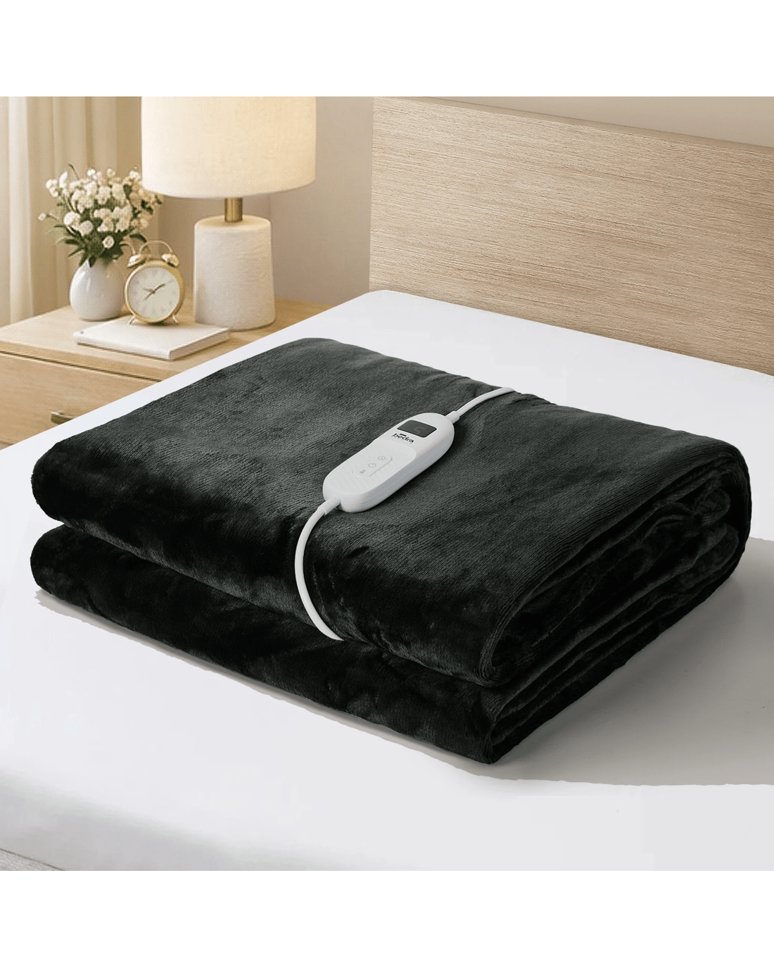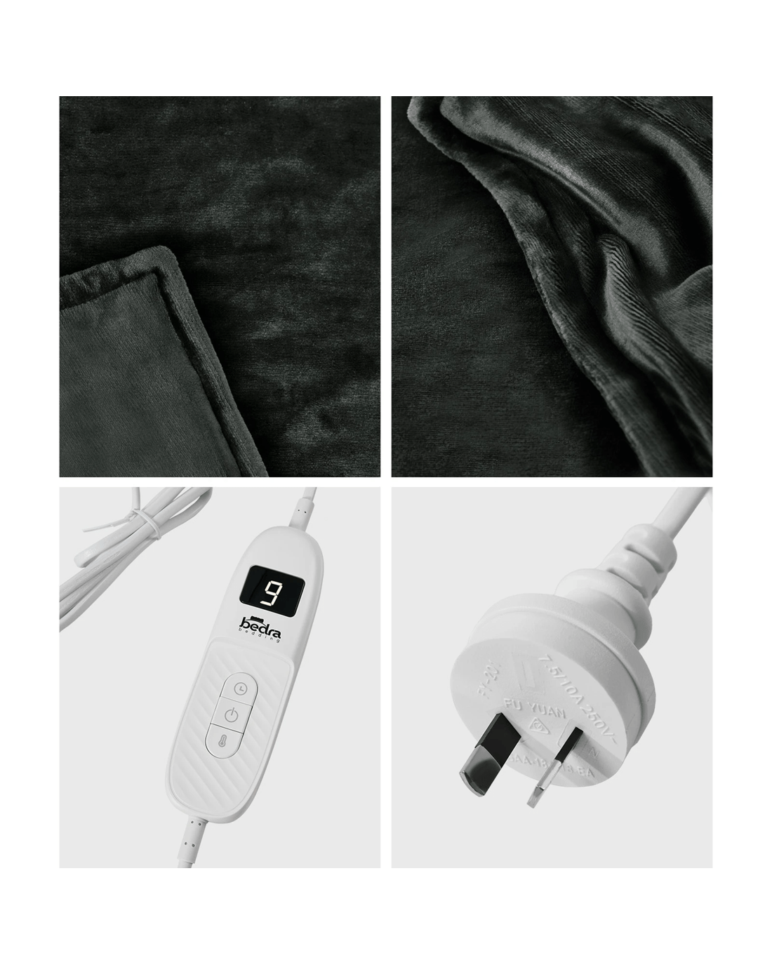 Bedra Bedding Electric Throw Rug Washable Heated Blanket Flannel Winter Warm - Single Bed - Charcoal