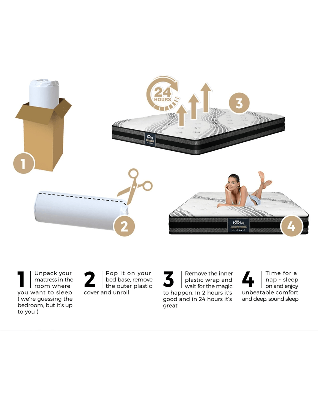 Note: For health and hygiene reasons, we cannot accept returns for refunds or exchange for pillows, quilts, toppers, mattress protectors and mattresses unless they are faulty or not as ordered. In the unlikely event the mattress is not to your satisfaction, please tell us to help resolve the issue.