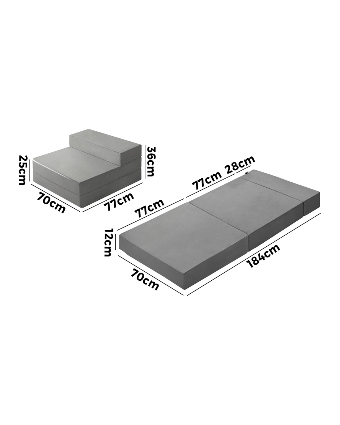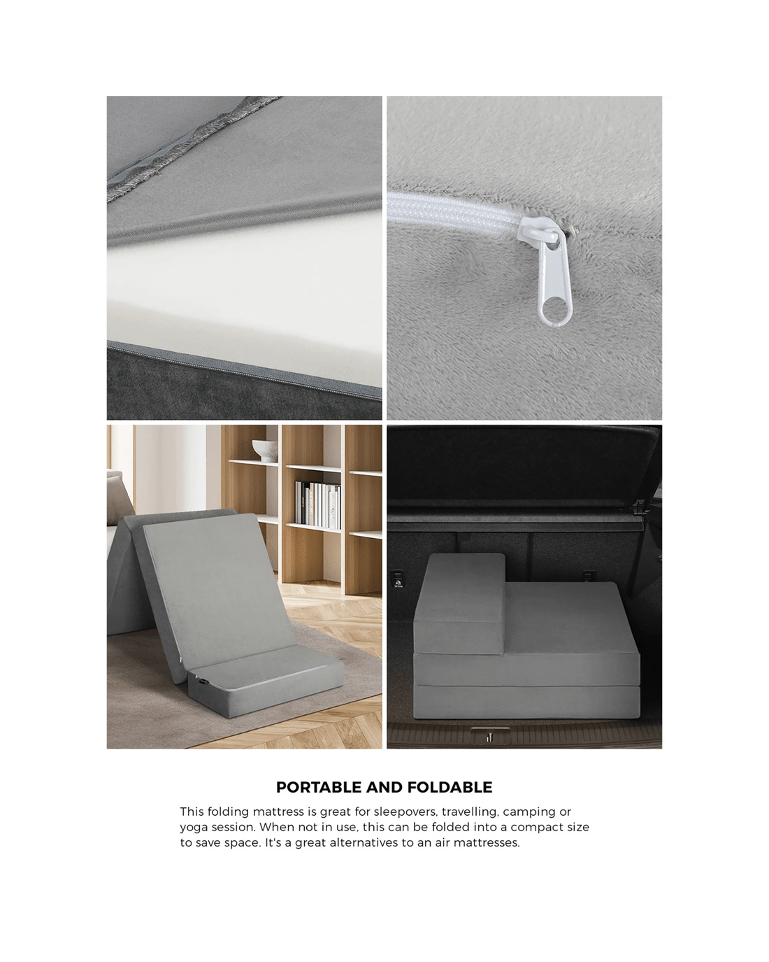 Bedra Folding Foam Mattress Single Foldable Sofa Bed Portable Camping Floor Mat - Grey