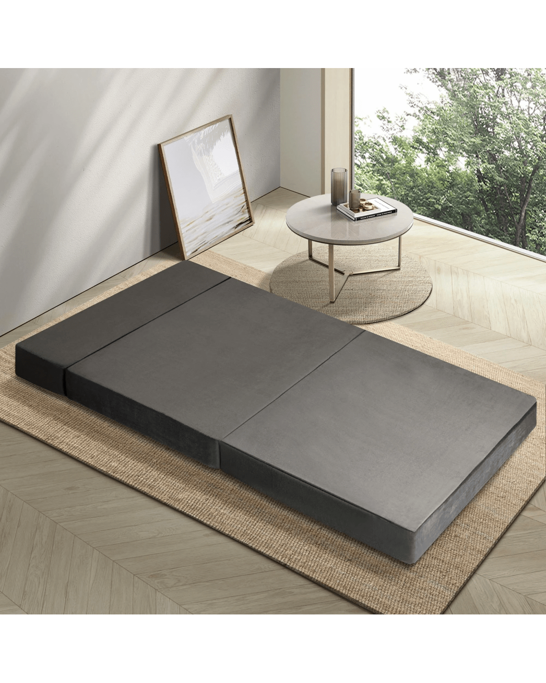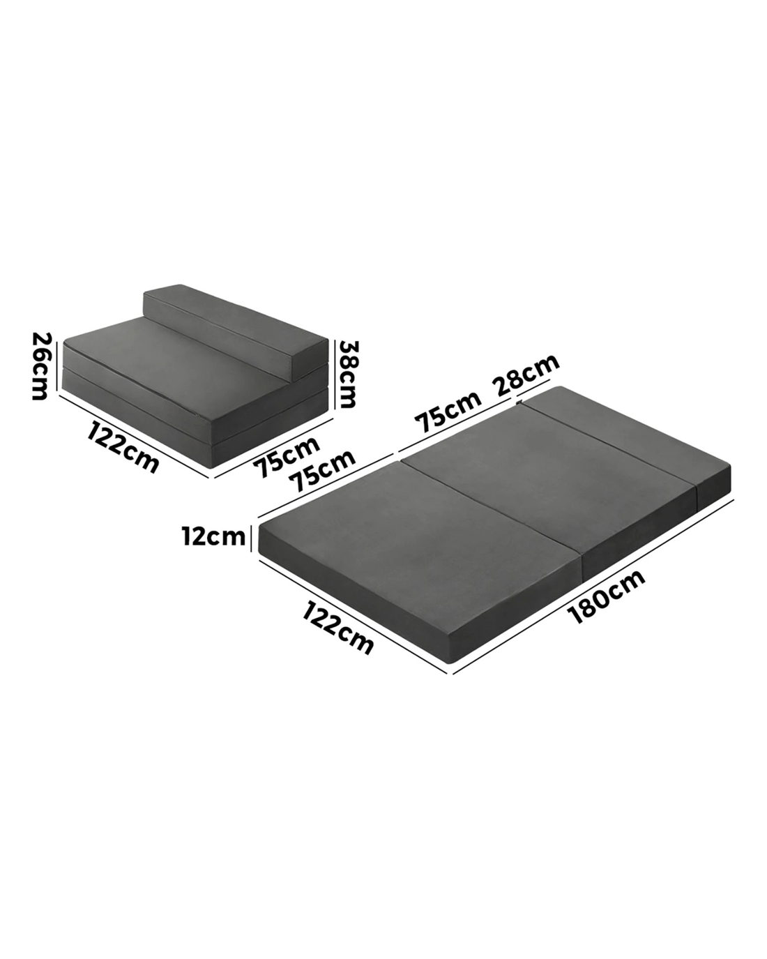 Sold by Kamprad's Oikos 1943Bedra Bedding Folding Foam Mattress Sofa Bed Trifold Foldable Futon Camping Mat Double - Grey