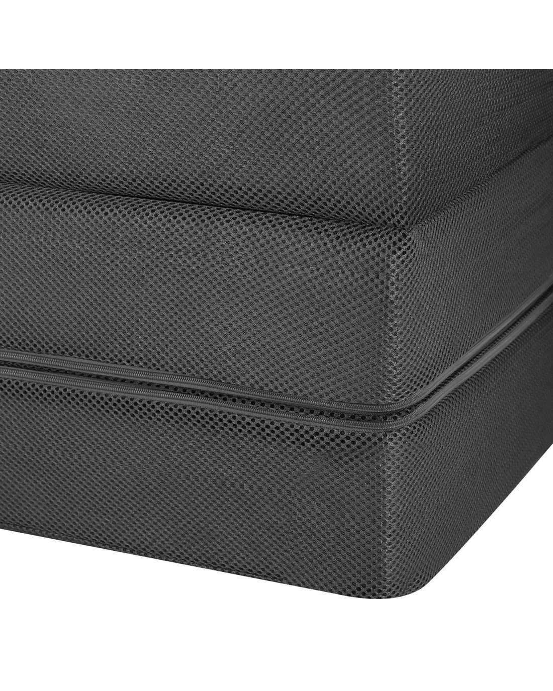 Upholstered with soft airmesh fabric, the mattress is breathable and allergy-free with a 10cm thick foam infill for total comfort. And for the hygiene-obsessed, the airmesh fabric cover is easily unzipped for cleaning and washing. Love camping? Take this folding mattress along for a super neat camp bed and seat.