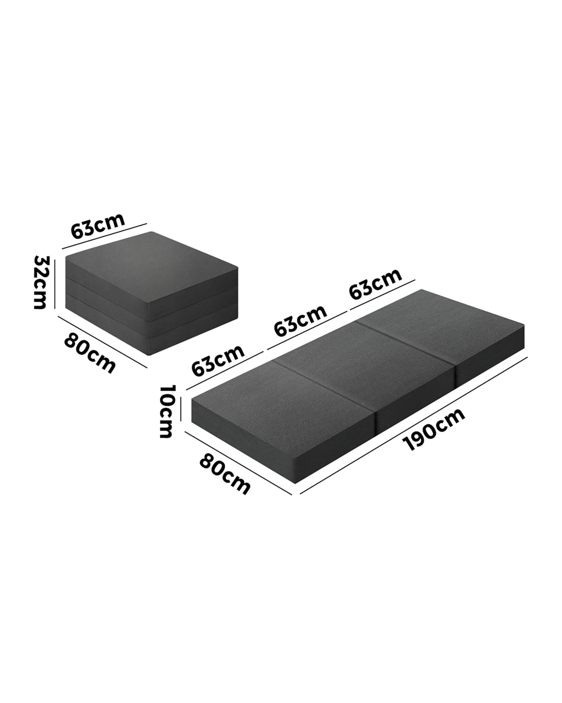 - 190cm x 80cm x 10cm