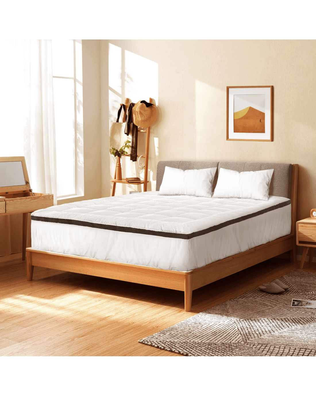 Unlike other inferior mattress toppers, ours features a box-stitched design that ensures the 1000gsm microfibre filling stays in place and never shifts around to provide an even weight distribution and support where it is intended to be. Better still, you can also sleep soundly and comfortably as the mesh design keeps the air flowing smoothly through the topper that is 50% more breathable than traditional toppers.
