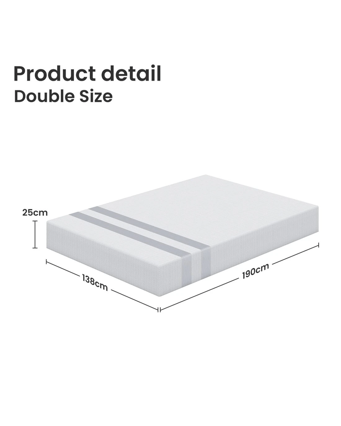 BedStory Double Memory Foam Mattress 25cm Cooling Gel Foam Mattress in a Box Medium Feel - Double Bed - White