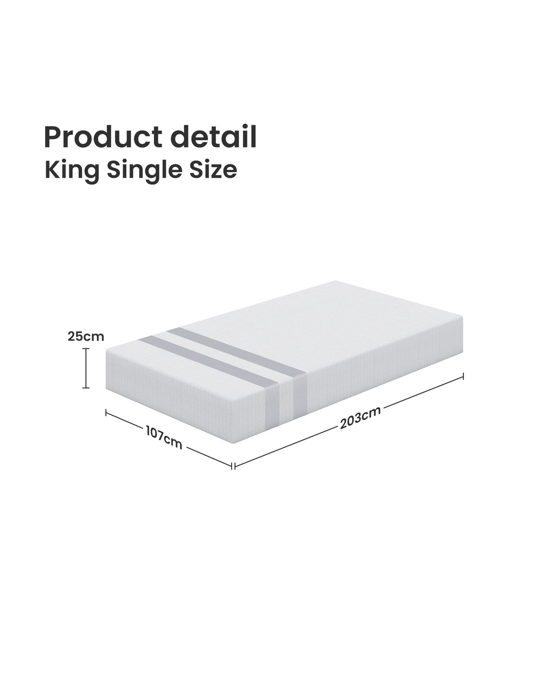 BedStory King Single Memory Foam Mattress 25cm Cooling Gel Foam Mattress in a Box Medium Feel - King Single Bed - White