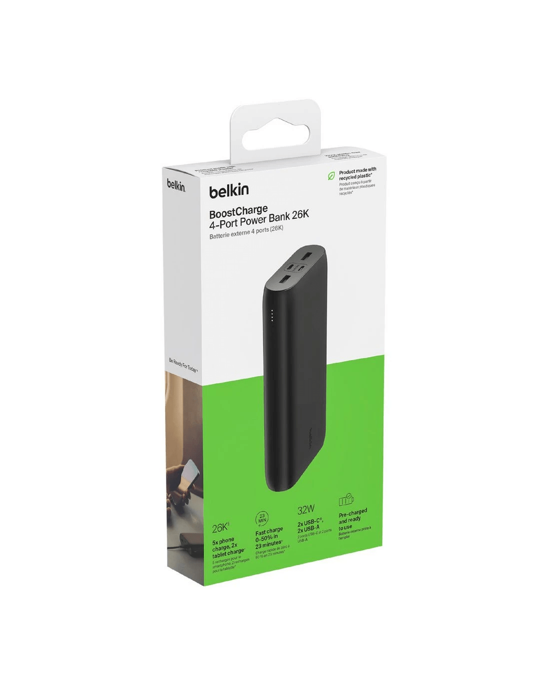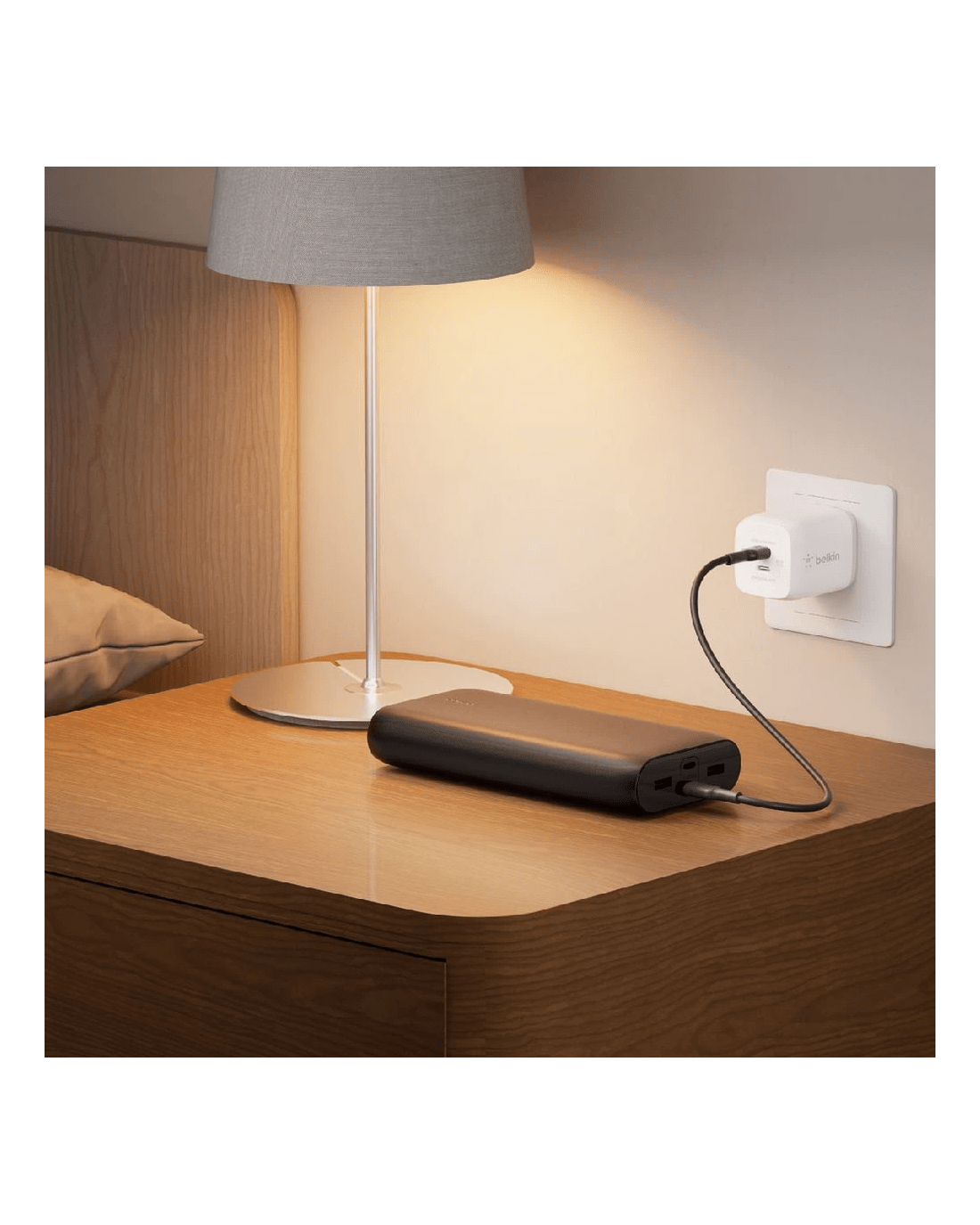 Stay charged anywhere with the Belkin Boost 26K Power Bank. You can charge up to 4 devices at the same time through its dual USB-C ports and dual USB-A ports. Plus, the 26,000mAh battery can provide enough power to recharge your smartphone for up to 115 additional hours.