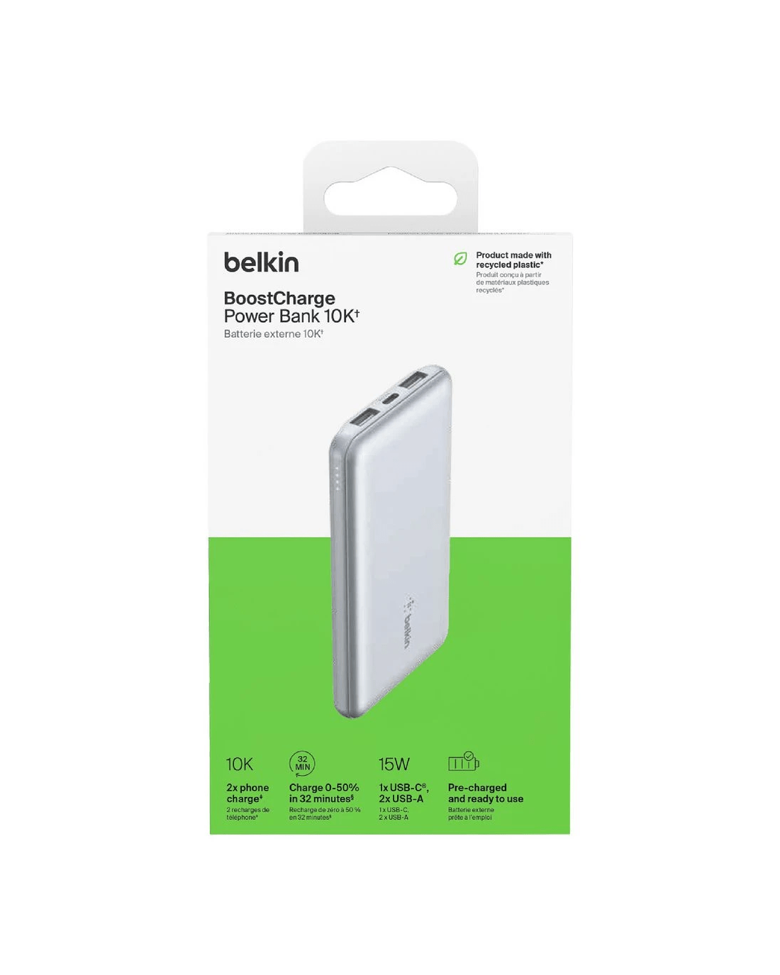 Stay charged anywhere with Belkin BoostCharge 10K 15W Powerbank. It can charge 3 devices at the same time plus, the 10,000 mAh battery provides your smartphone with enough power for up to 40 additional hours of use.