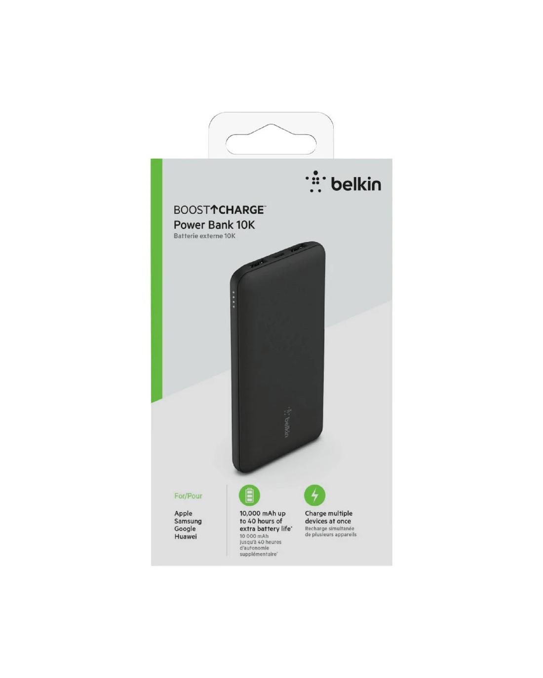 Get an additional 40 hours of battery life for your smartphone* with the Belkin BoostCharge Powerbank. Boasting 10K of power and featuring an ultra-portable design, it allows you to charge up to 3 devices simultaneously via its USB-C port and 2 USB-A ports, so you can binge watch movies, take video calls and keep your navigation apps running until you reach your destination. It includes an LED indicator light, so you'll always know when it's time to recharge.