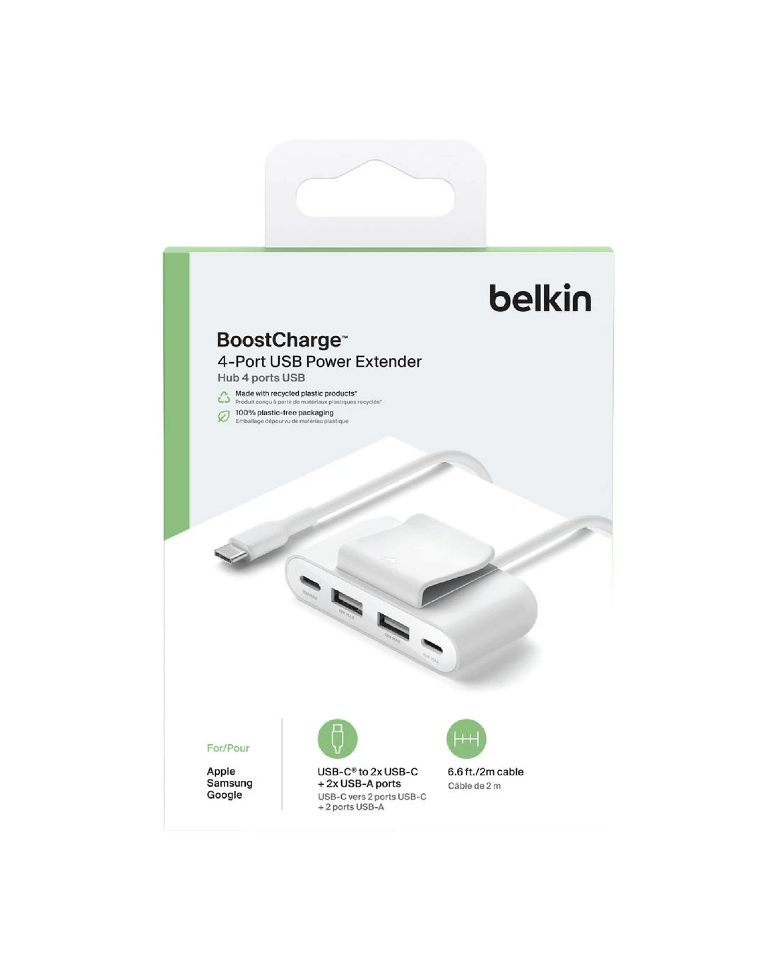 This Belkin BoostCharge 4-Port USB Power Extender offers a new and convenient way to charge multiple devices. From 1 USB-C port, the splitter provides 2 USB-C and 2 USB-A ports, allowing you to power up to 4 devices simultaneously. It features a detachable clip that secures the splitter to a seat, couch or desk, as well as a 2 m extension cord for easy access so you can share power with family and friends any time, from anywhere.