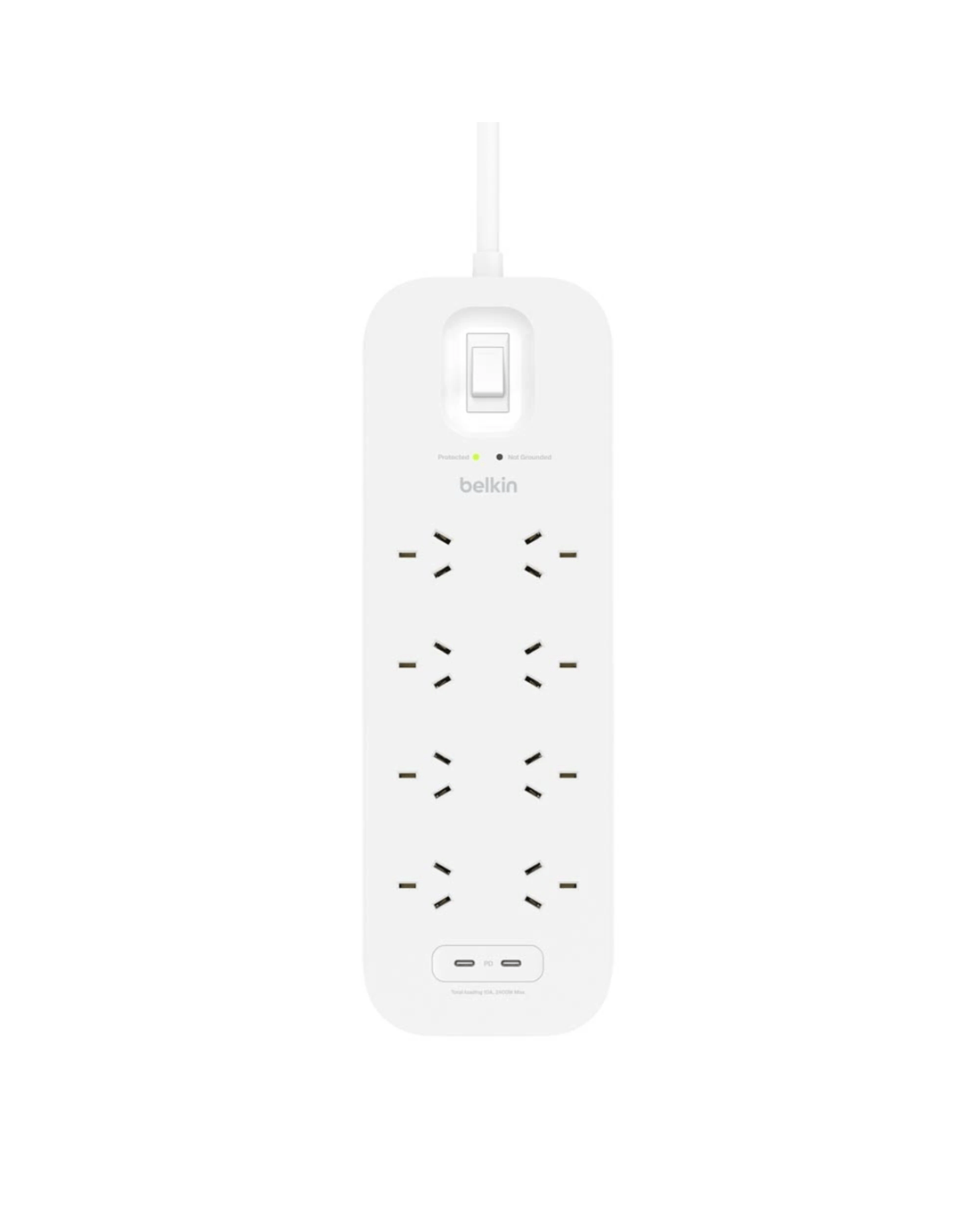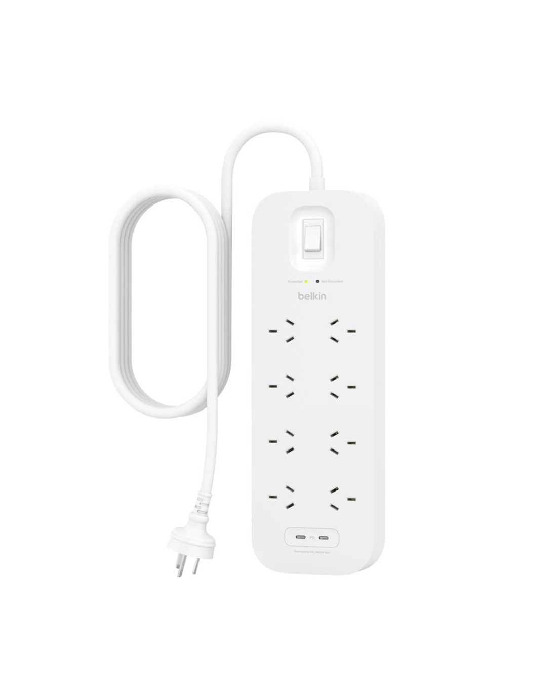 It features 8 standard outlets and 2 x USB-C fast charging 30w ports.