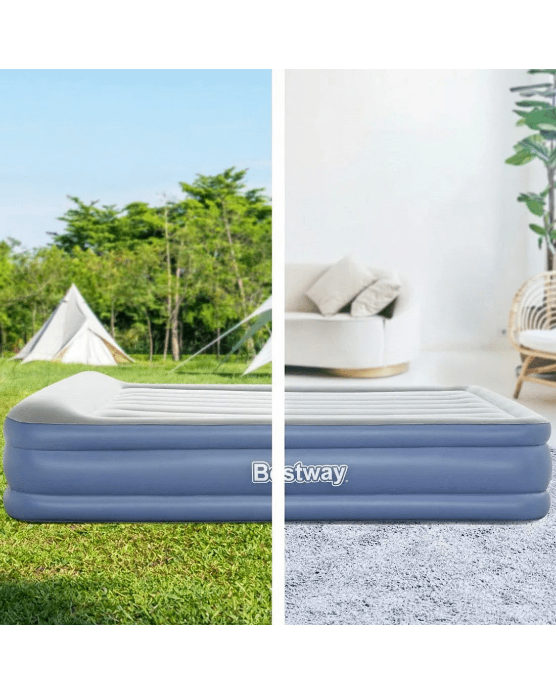 Featuring a comfortable flocked sleeping surface, the queen size air bed provides a smooth and comfy sleep each and every night. Designed with a sturdy I-beam construction, this quality air bed is suitable for both indoor and outdoor use. Inflates in just 300 seconds, You will have an instant bed ready to go whenever the situation calls for a spare mattress. Portable, easy to store and effortless to set up, this convenient air mattress provides the perfect balance of comfort, practicality and affordability.