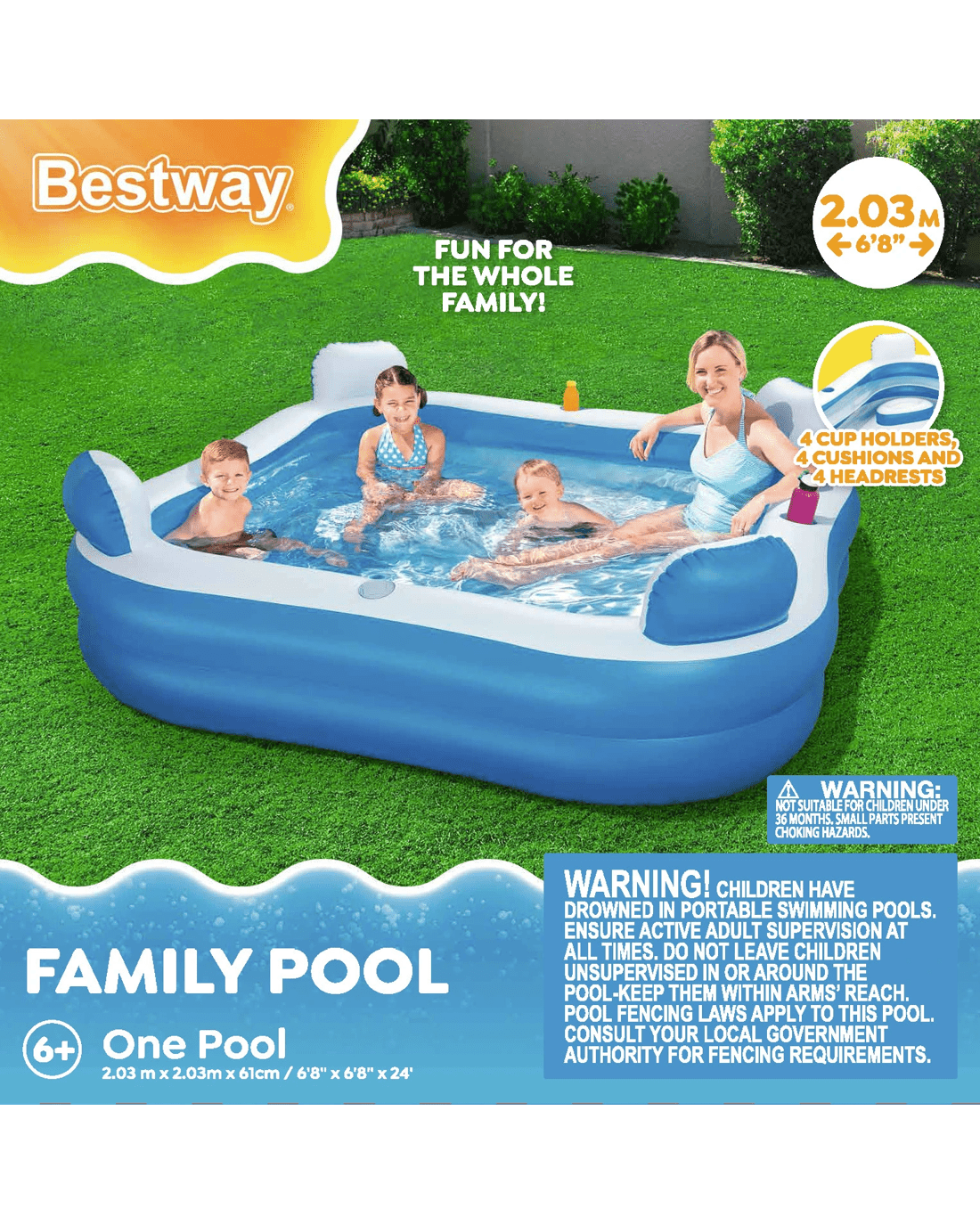 Warning: Children have drowned in portable swimming pools. Please contact your local council for pool fencing laws and water restrictions. Follow usage instructions carefully.