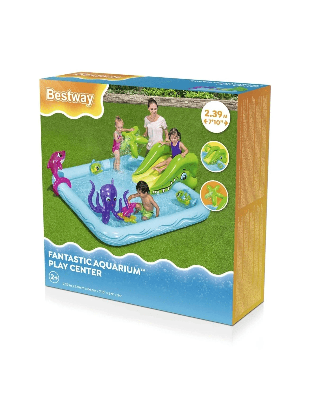 Turn your outdoor space into a vibrant sea world with the Bestway Fantastic Aquarium Play Centre. Little ones will love sliding into a splashy pool, surrounded by cheerful sea creatures like dolphins, clown fish, and an octopus. The attached palm tree sprayer keeps the fun extra cool, making it the perfect way to enjoy warm days outside. Easy to assemble and thoughtfully made for active youngsters, this centre promises endless entertainment and giggles. It's a wonderful way to inspire creativity and bring friends together for afternoons of excitement. Treat your children to this delightful play centre and let every sunny day overflow with joy and adventure.
