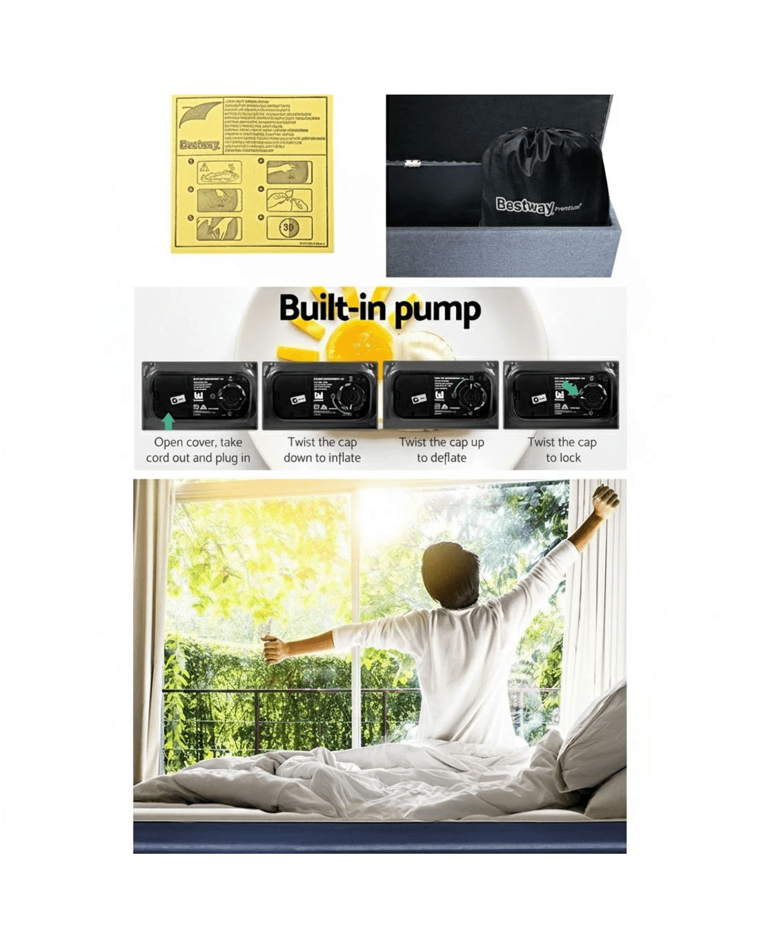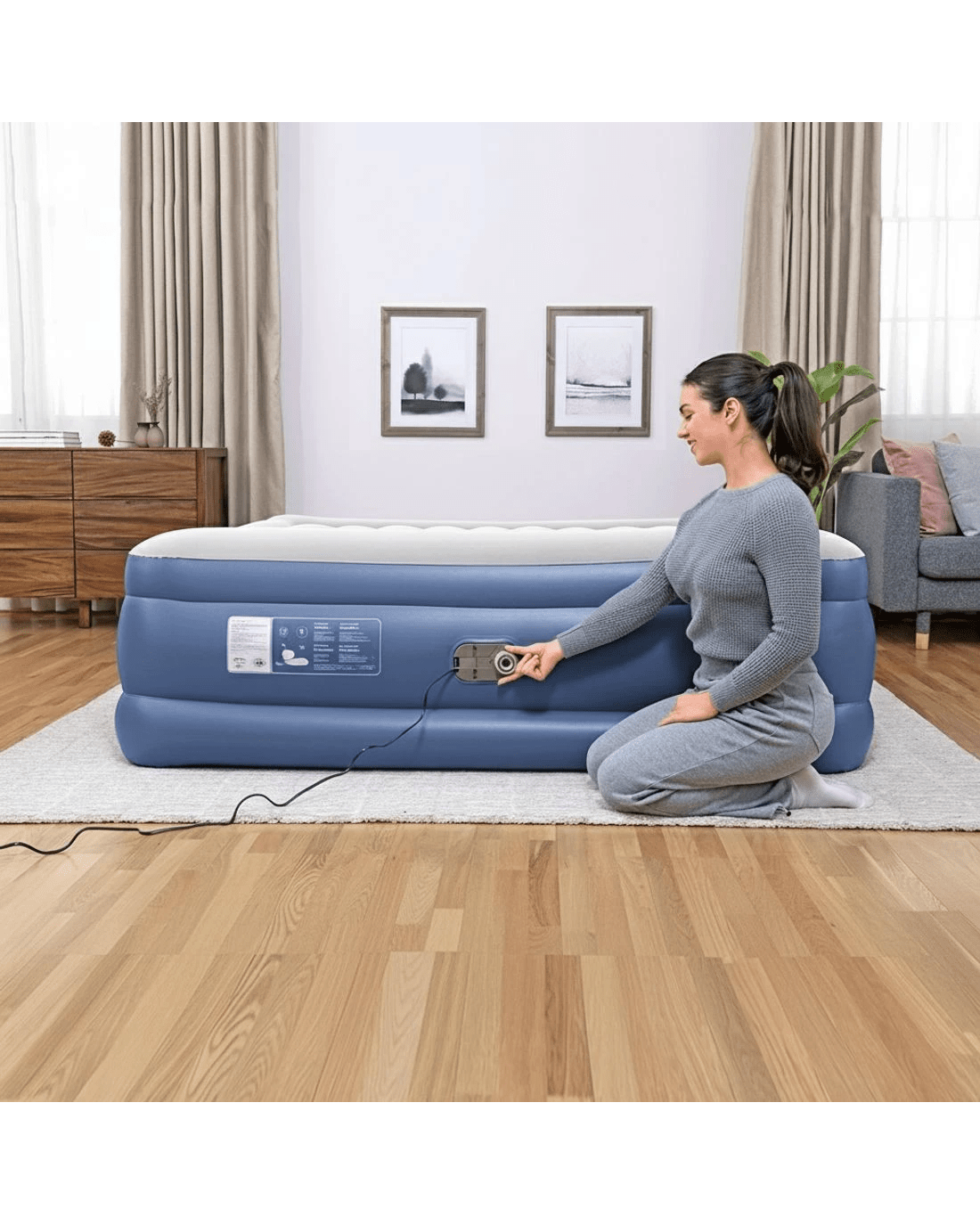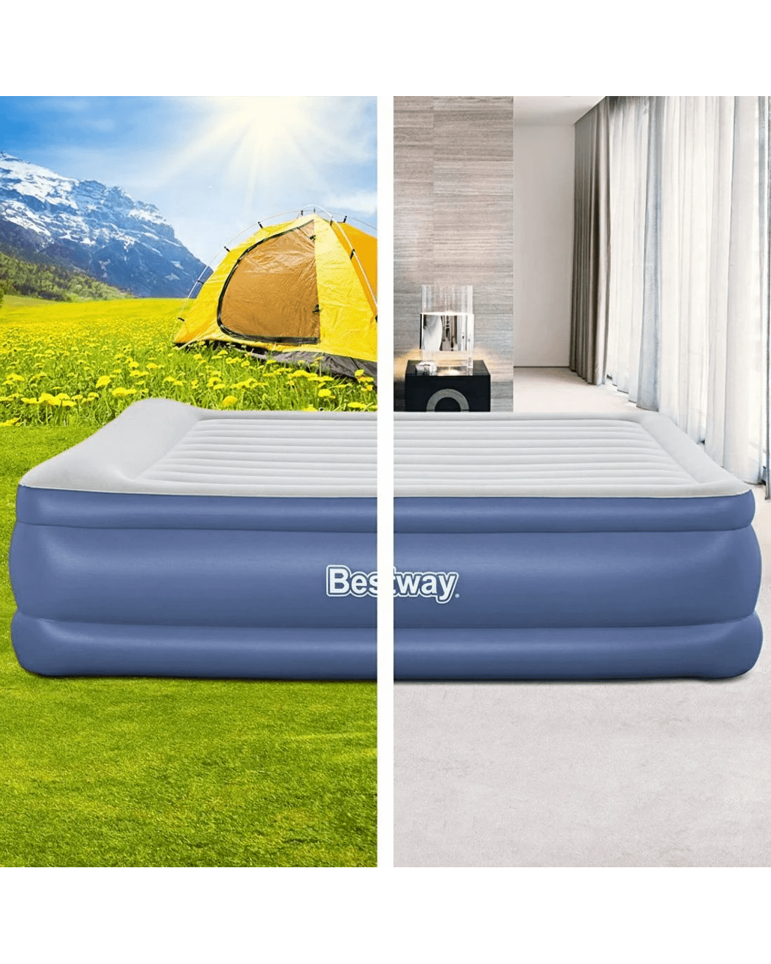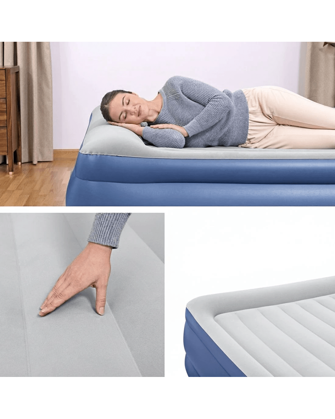 Bestway King Size Inflatable Air Bed with Built-in Pump, Flocked Navy (203 x 193 cm) - Blue