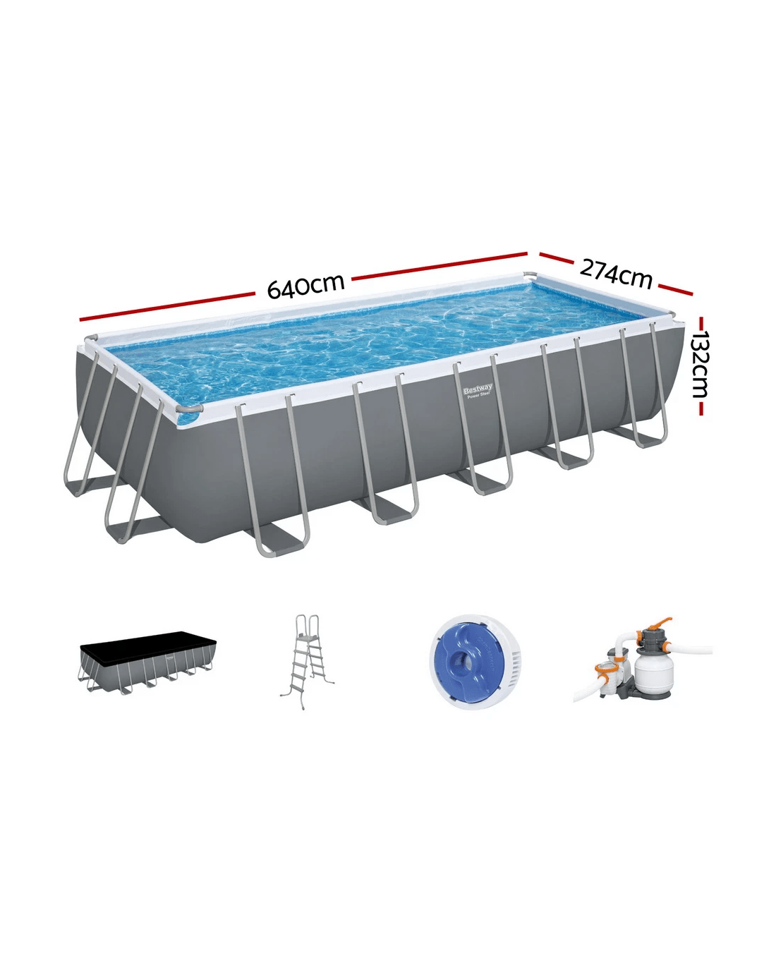 Bestway Swimming Pool 640x274x132cm Steel Frame Above Ground Pools Filter Pump Ladder 19281L - Multi