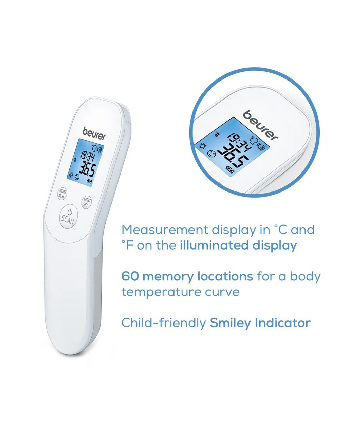 This Beurer Medical Non-contact Thermometer makes it easy to measure body temperature, ambient room and surface temperatures without having to make direct contact. It provides hygienic, safe and accurate measurements in a matter of seconds. You can set a temperature alarm for 38°C and above for easy detection of fevers.