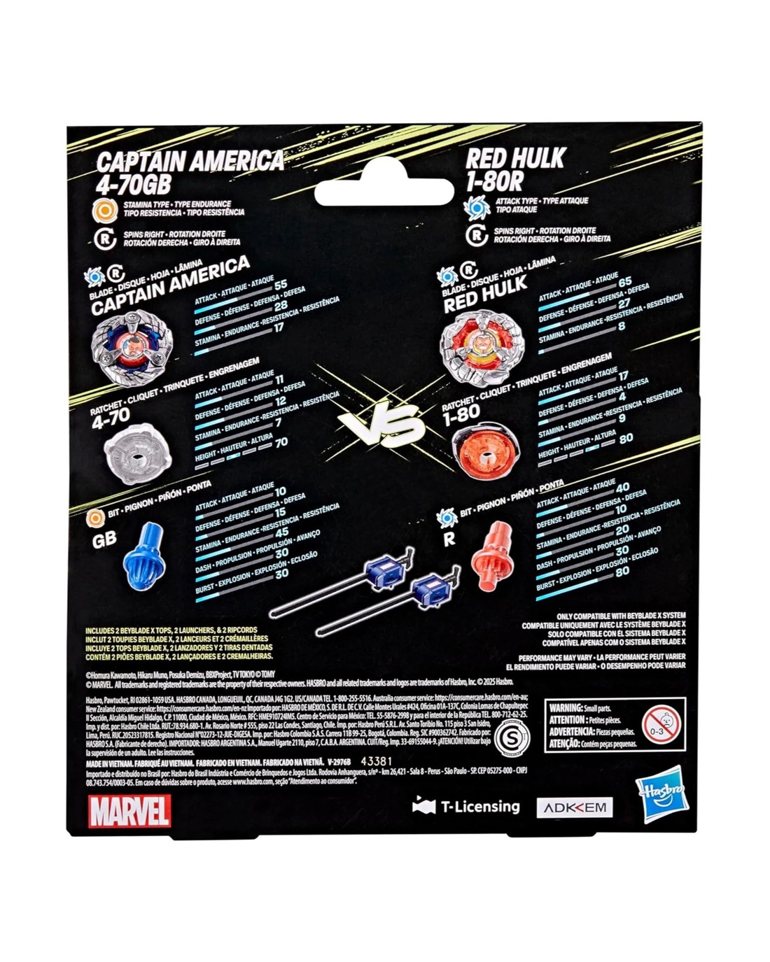 Beyblade X Marvel Captain America 4-70GB vs Red Hulk 1-80R Multipack Set