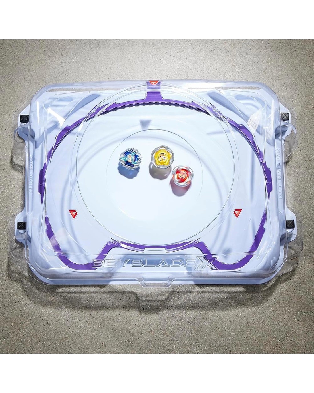 - SPEED INTO HIGH GEAR: This Beyblade X stadium features the X-Celerator Gear System. When the gears of the bit and the stadium rail meet, tops rocket forward in an Xtreme Dash reaching intense speeds (Only compatible with Beyblade X).