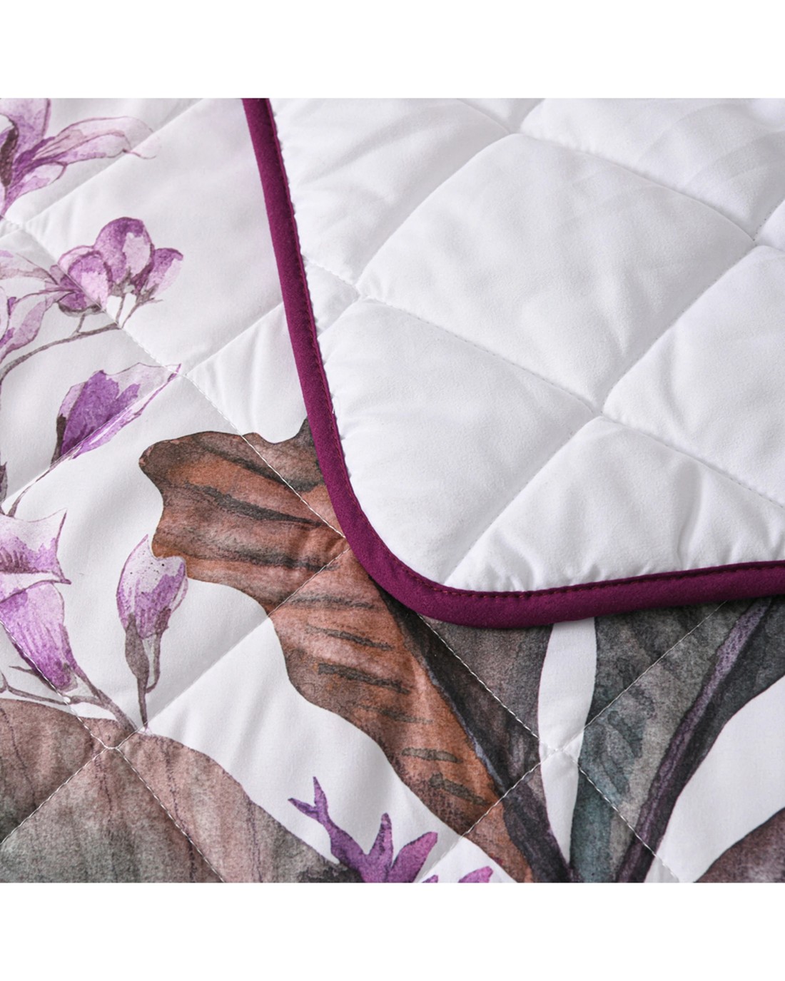 The Bianca Abigail King Berry Polyester Bedspread Set is designed for adding a stylish and comfortable touch to your bedroom. Featuring bold floral patterns in deep plum tones with sage foliage on a neutral white background, this bedding set creates a vibrant and inviting atmosphere.
