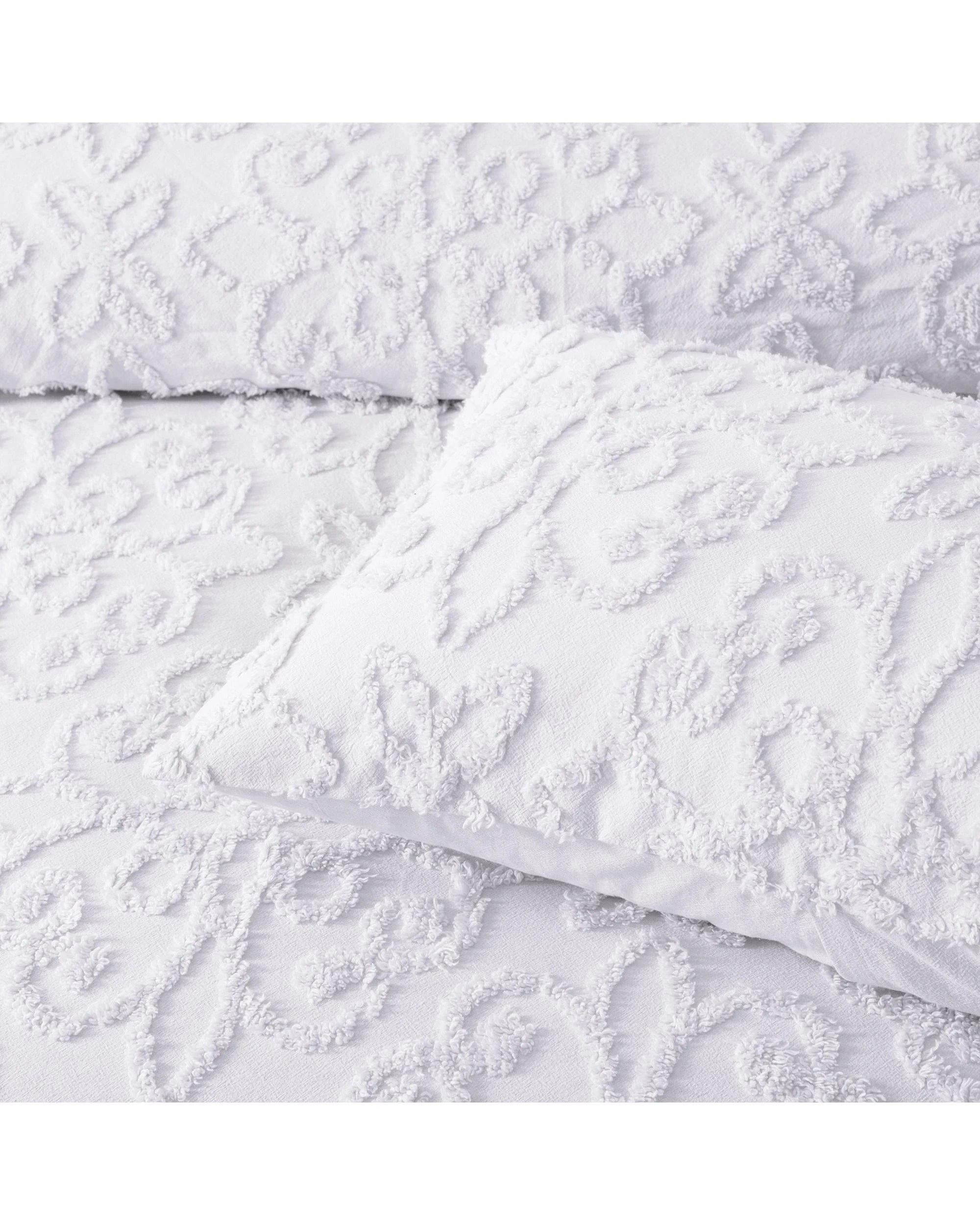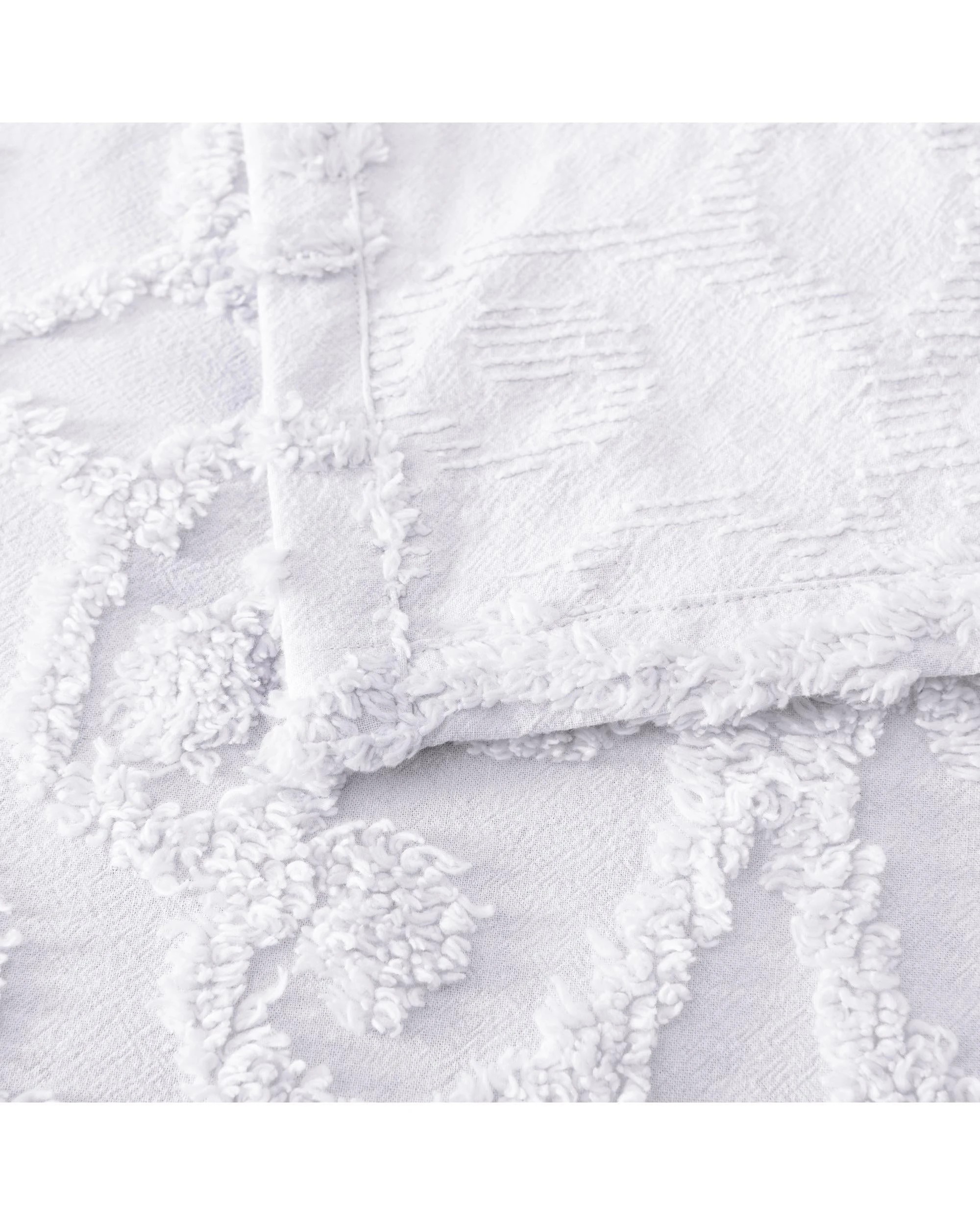 Bianca Bedding ELLA Cotton Chenille Bedspread Set — Textured Motif, White or Blush - King Single Bed - white