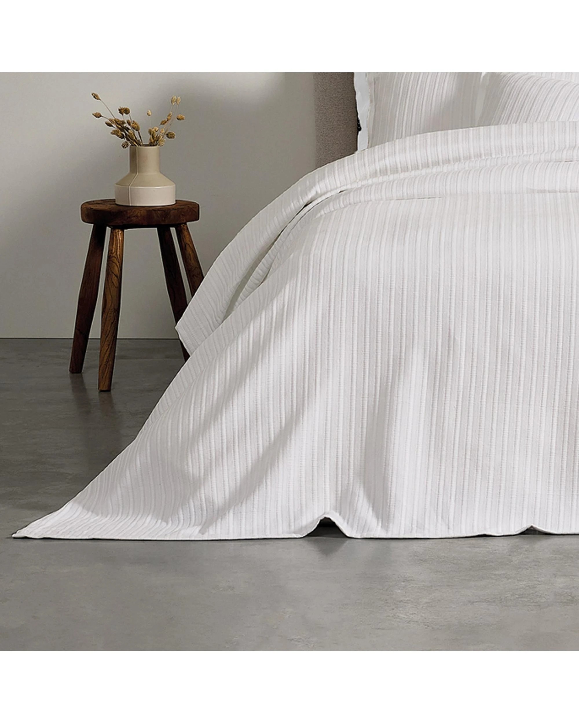 Bianca Bedding Evora Cotton Jacquard Coverlet Set - Made in Portugal - King Bed - white