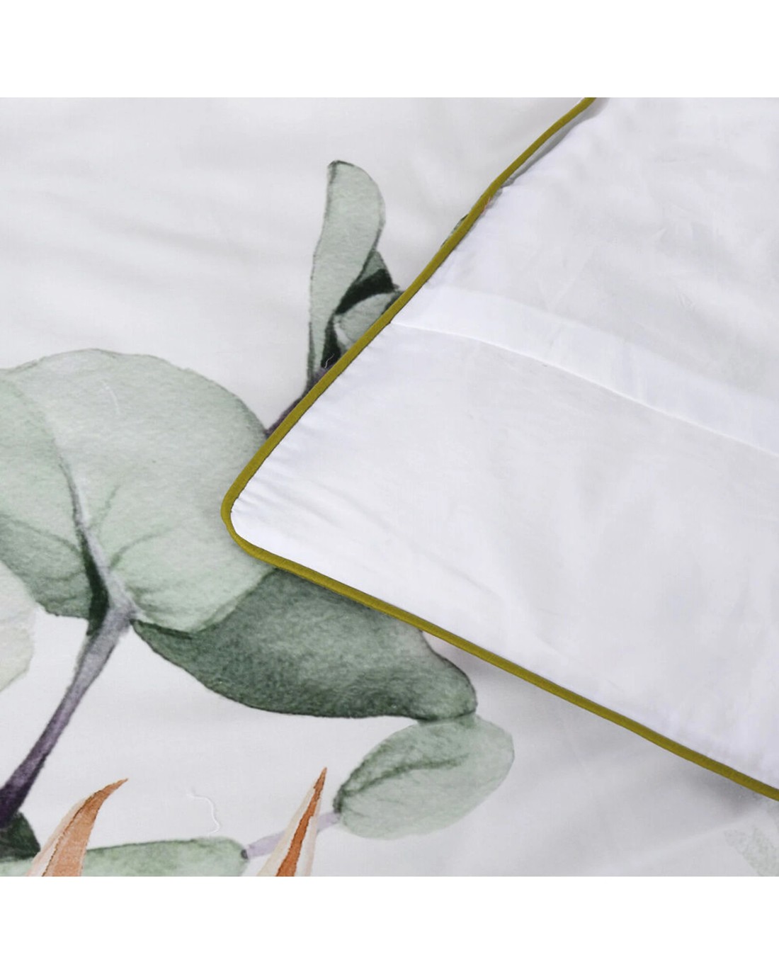 This set features a beautiful floral design that brings a fresh, natural aesthetic to your space. The quilt cover is finished with a chic green piped edge, adding a refined detail that enhances its visual appeal. The set includes a spacious quilt cover and two matching pillowcases, providing a coordinated and complete bedding solution.