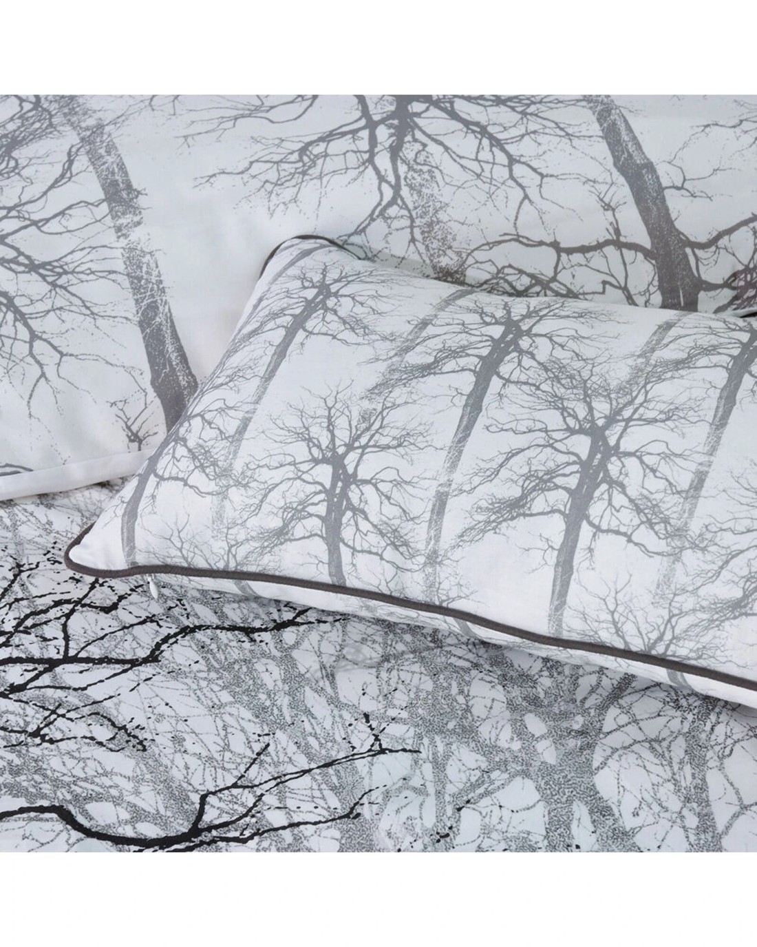This complete bedding set includes one quilt cover and two standard pillowcases, providing a coordinated and ready-to-use solution for your bedroom. The detailed pastoral design features leafless woodland imagery, adding natural serenity and a touch of countryside sophistication to your decor. The crisp contrasting piped edge enhances the refined look of the set.