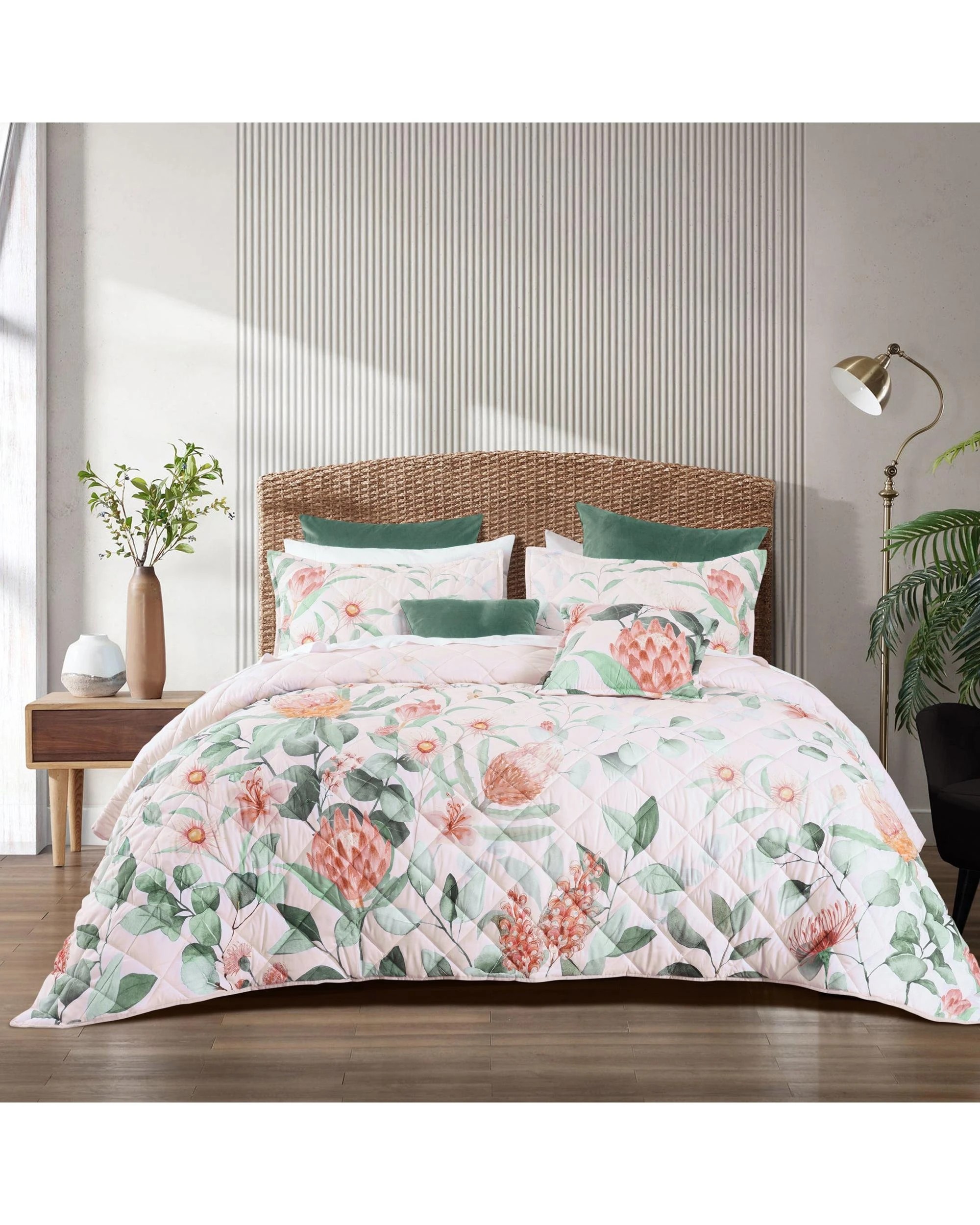 Bianca Bedding Sidney Quilted Bedspread Set - Blush Protea Print - Assorted