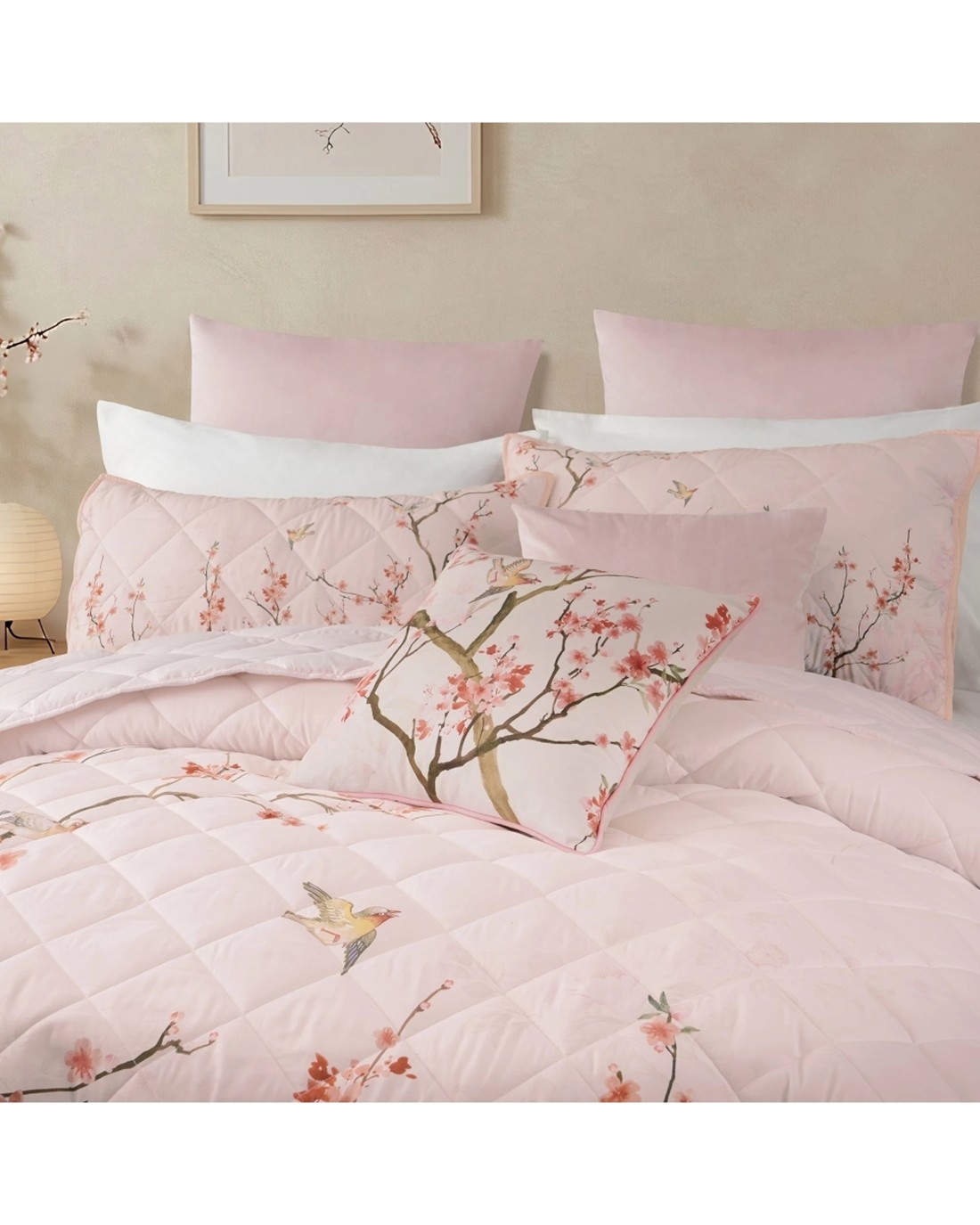 Sold by KG SuperStoreBianca Evelyn Blush Cherry Blossom Bedspread Set Quilted - King Bed - Pink