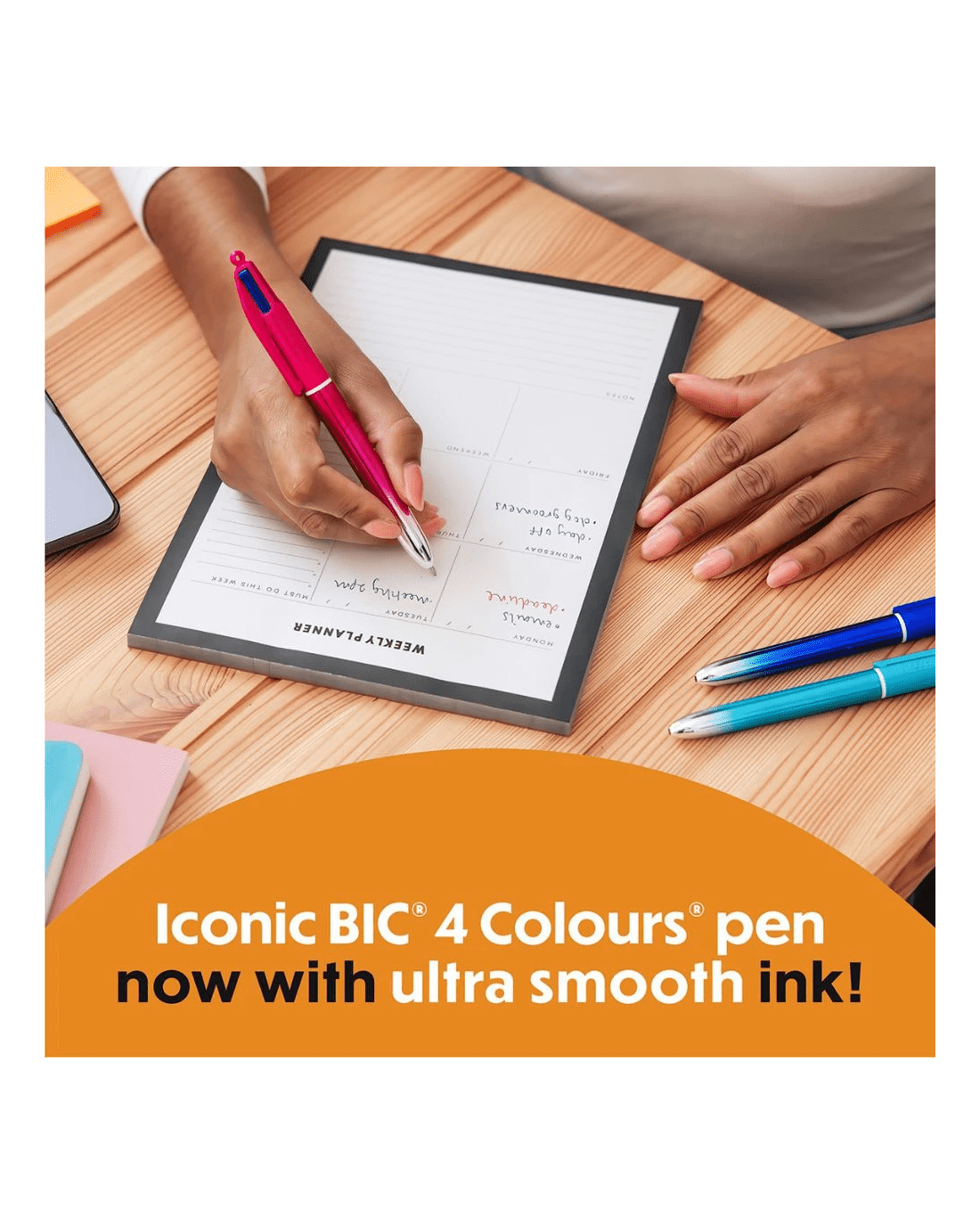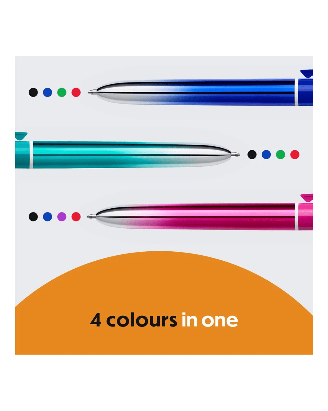 This Bic Ballpoint Pen is an easy-to-use companion for all your writing tasks. It provides 4 colour option you can access with a simple click function, allowing you to write, edit, mark, and organise all of your notes.