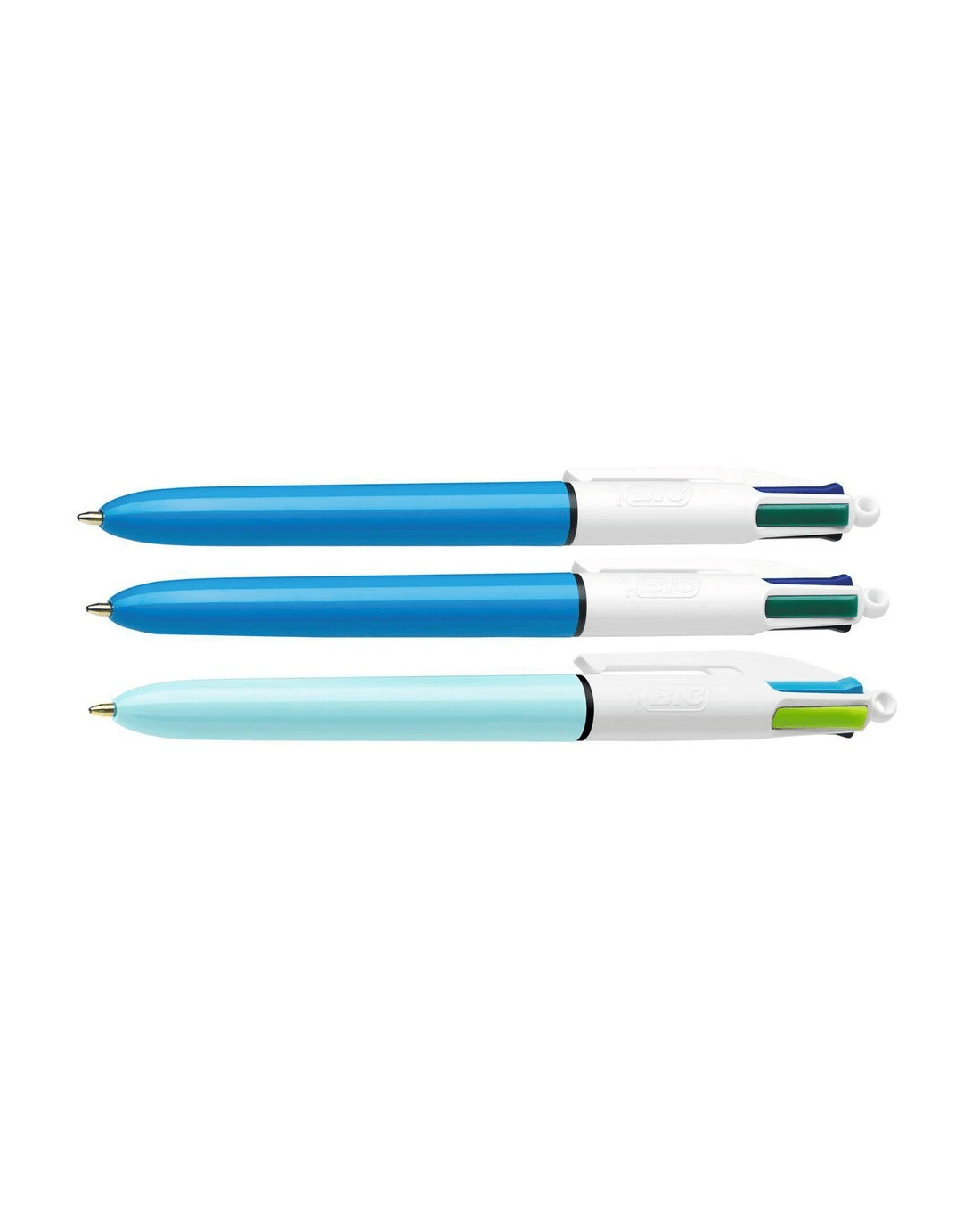 This set of 3 BIC 4 Colours Ballpoint Pens includes two original 4 colour pens in a timeless design, iconic blue barrel and traditional black, blue red, and green ink, as well as one fun version offering an updated barrel colour, as well as a fresh and unique assortment of ink colours: pink, purple, turquoise and lime green. With a medium 1.0m tip, perfect for note-taking, the practicality of this design have made it a popular choice in the classroom, at home or in the workplace.