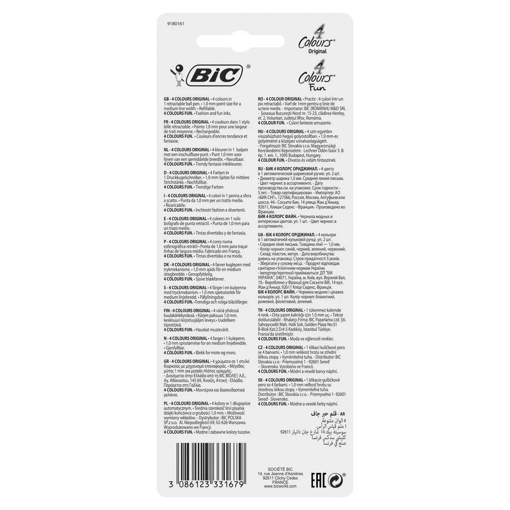 BIC 4 Colours Ballpoint Pens Original + Fun 3 Pack