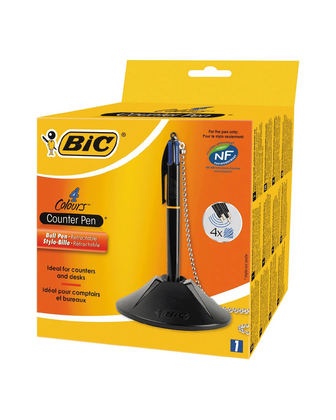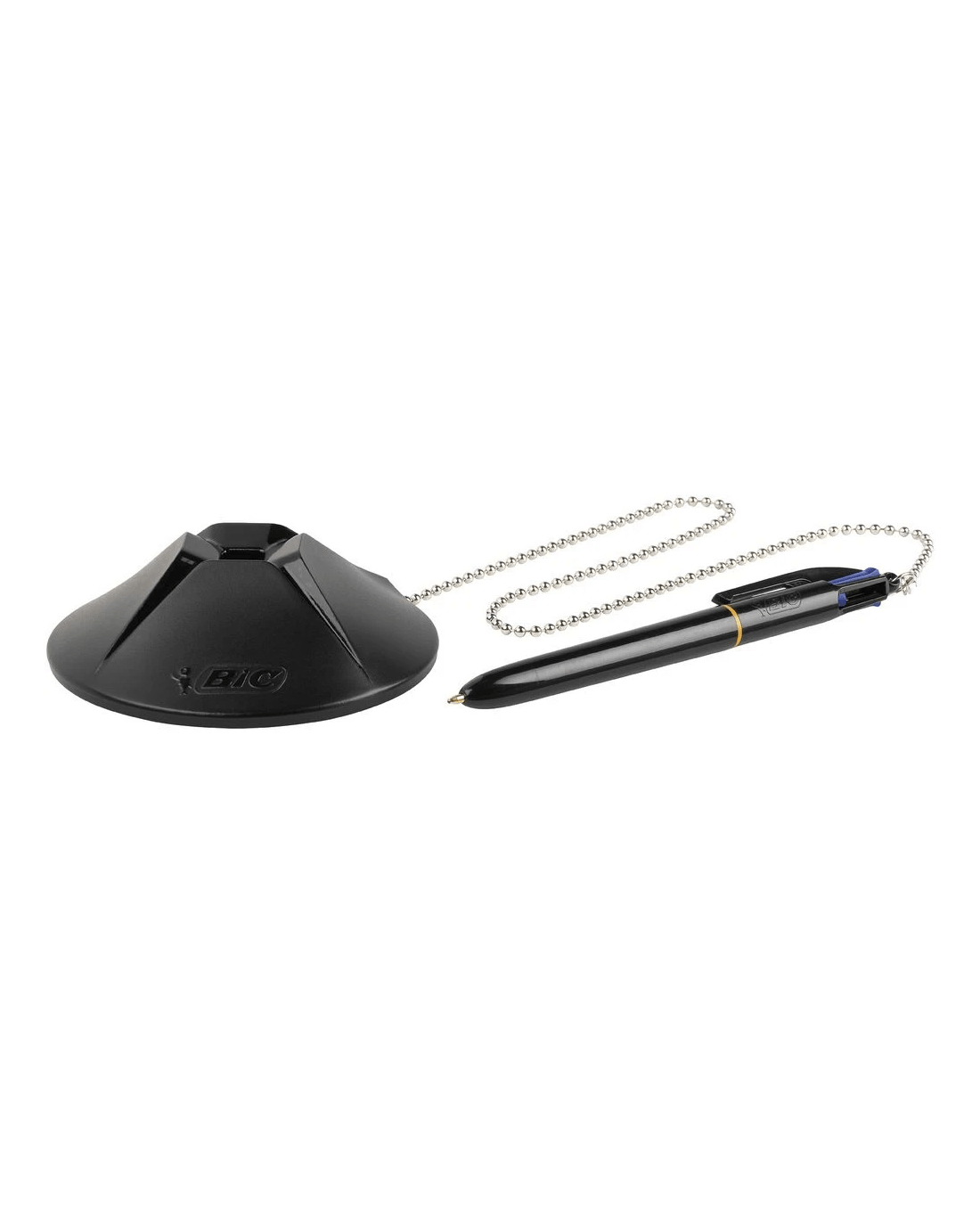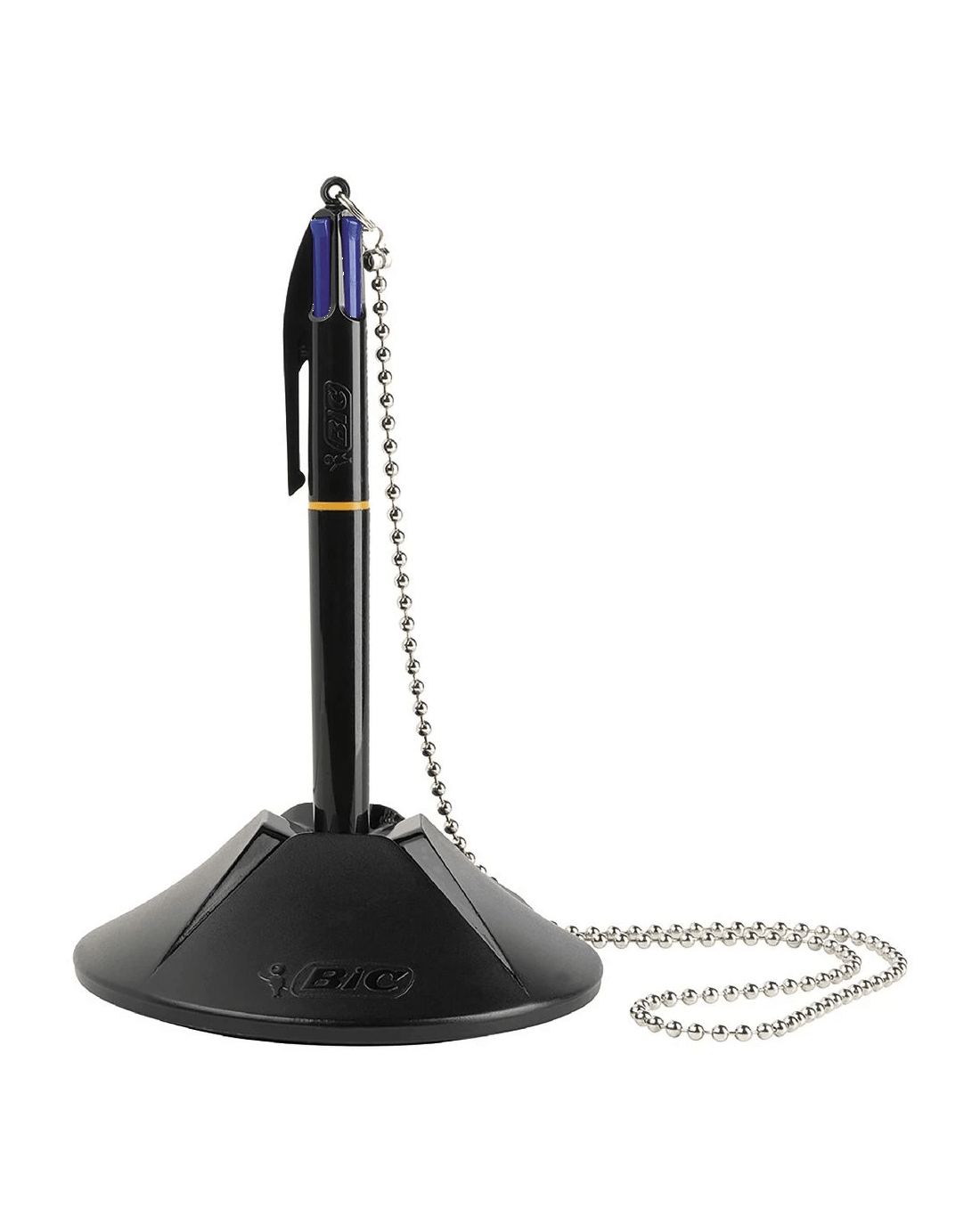 This BIC Captive Desk Pen is attached to a chain, so it's ideal for setting up on your reception desk or front counter. It has four nibs with professional blue ink for long-lasting use. Adhesive packs are included to fix the base to any flat surface. The chain is 58cm long, so it's easy to write with.