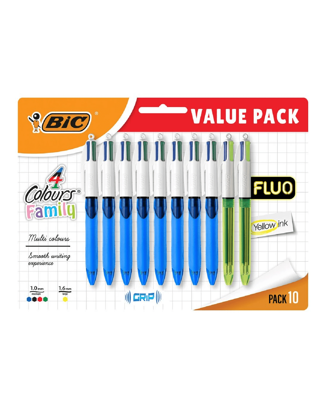 Sold by OfficeworksBIC 4-Colours Grip Fluoro Ballpoint Pens Assorted 10 Pack