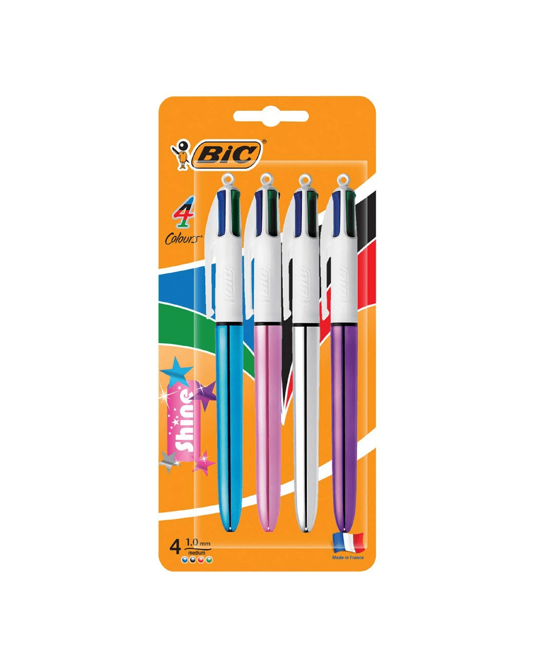 Sold by OfficeworksBIC 4 Colours Shine Ballpoint Pens 1mm Assorted 4 Pack