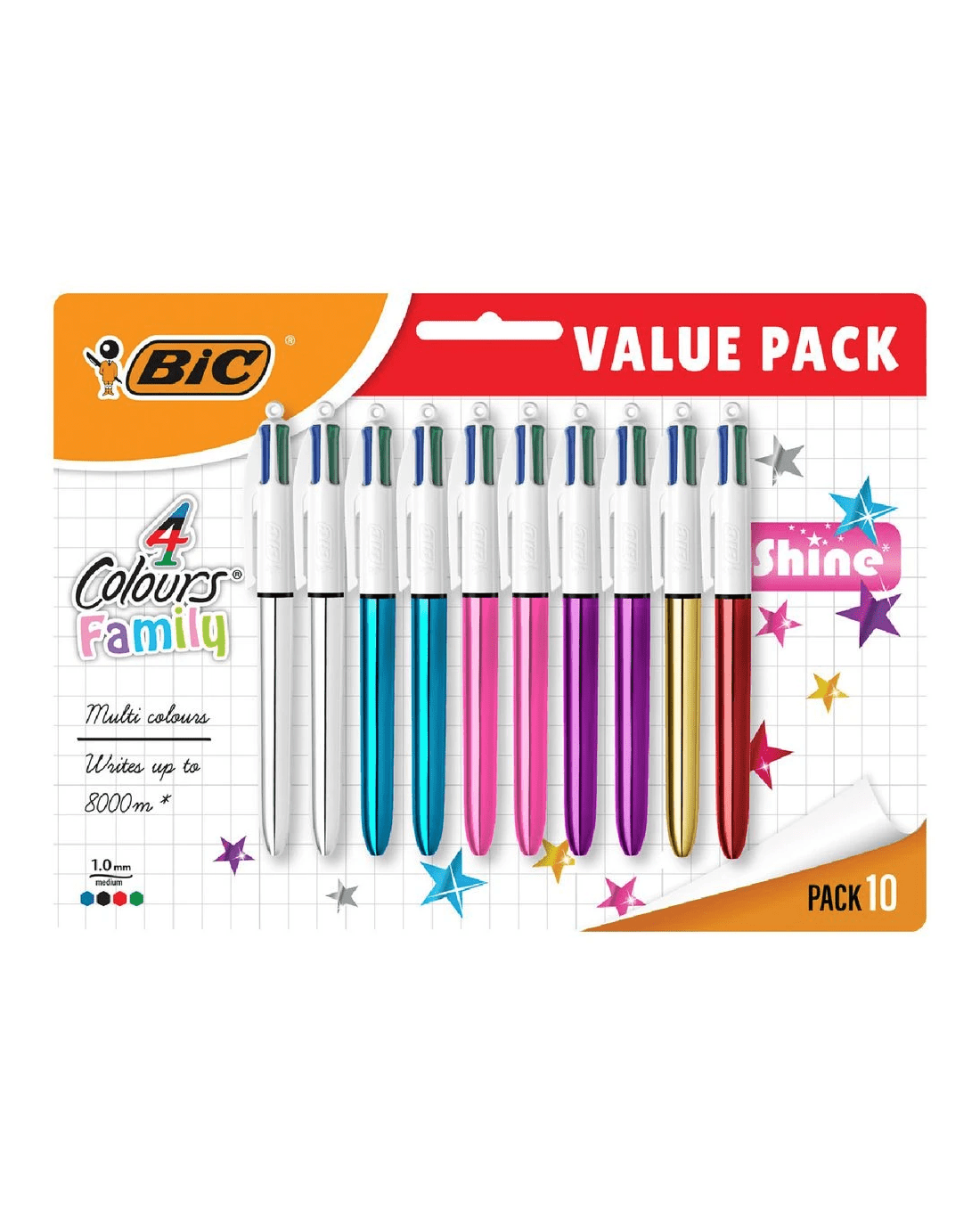 Sold by OfficeworksBIC 4 Colours Shine Ballpoint Pens Assorted 10 Pack