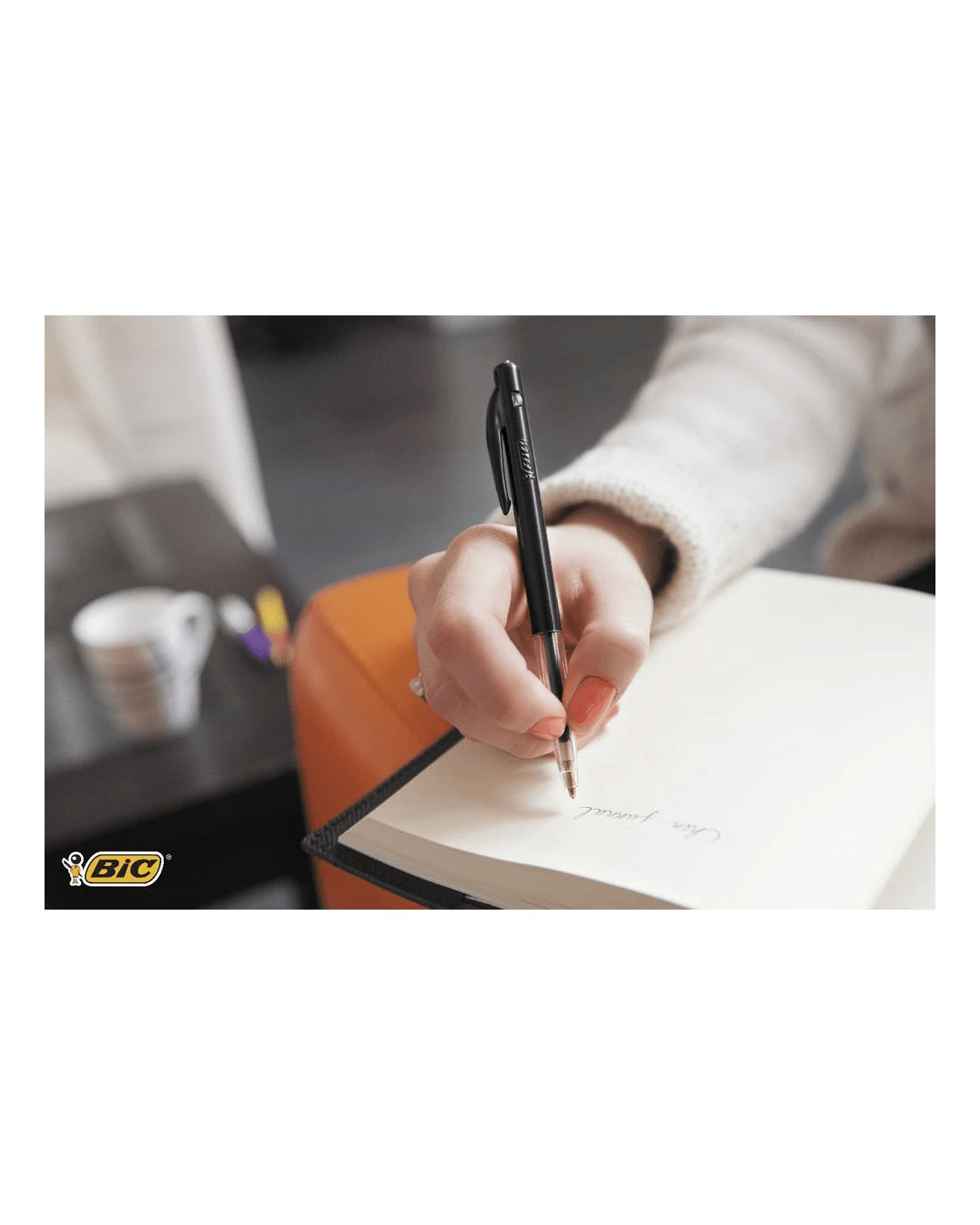 BIC Clic Retractable Ballpoint Pens make it easy to get writing in a hurry. The pens have a Clic button which gets them ready to write and unique side push button to retract the pen when you're done.