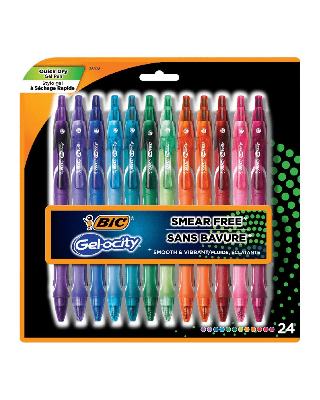 These BIC Gelocity Retractable Gel Pens feature a medium, 0.7 mm point that glides across the page for a smooth writing experience. The super quick-drying ink won't drip, smudge, or leak, making it especially useful for left-handed writers who are sick of smudged pages. Plus, the barrel of each gel pen is designed with a full grip for maximum writing comfort.