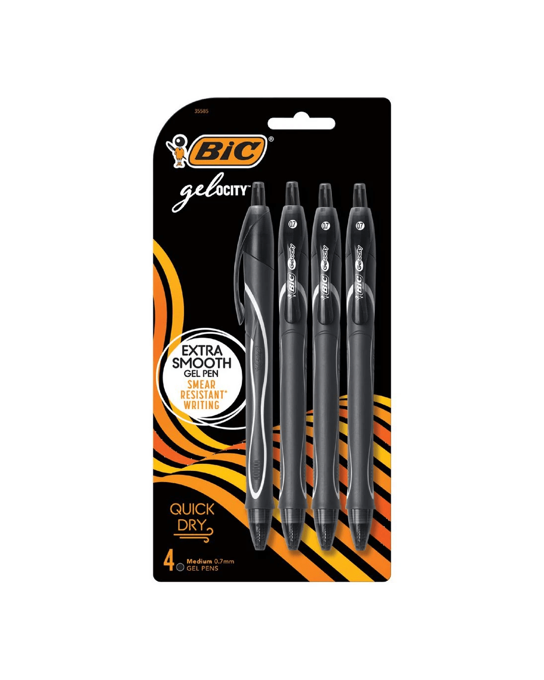 BIC Gelocity Quick Dry Gel Pens 0.7mm Black 4 Pack
