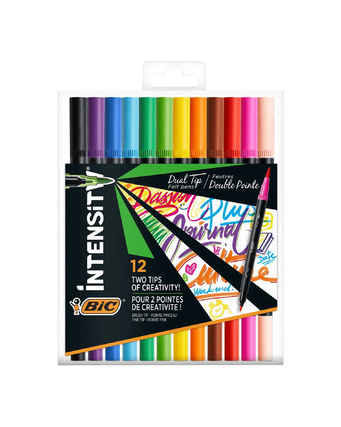 These BIC Intensity Dual Tip Fineliners feature a soft, medium brush tip on one end and a fine marker on the other, allowing you to achieve different results. The luminous and vivid water-based ink comes in assorted colours and allows you to decorate your notebooks, doodle and sketch, letter your bullet journals, and more.