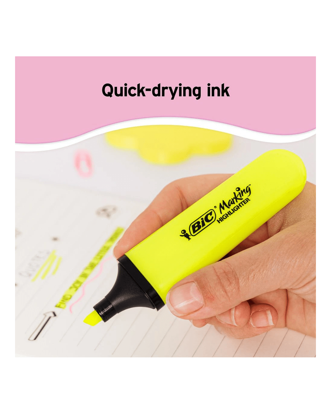 - It highlights using a water-based ink.