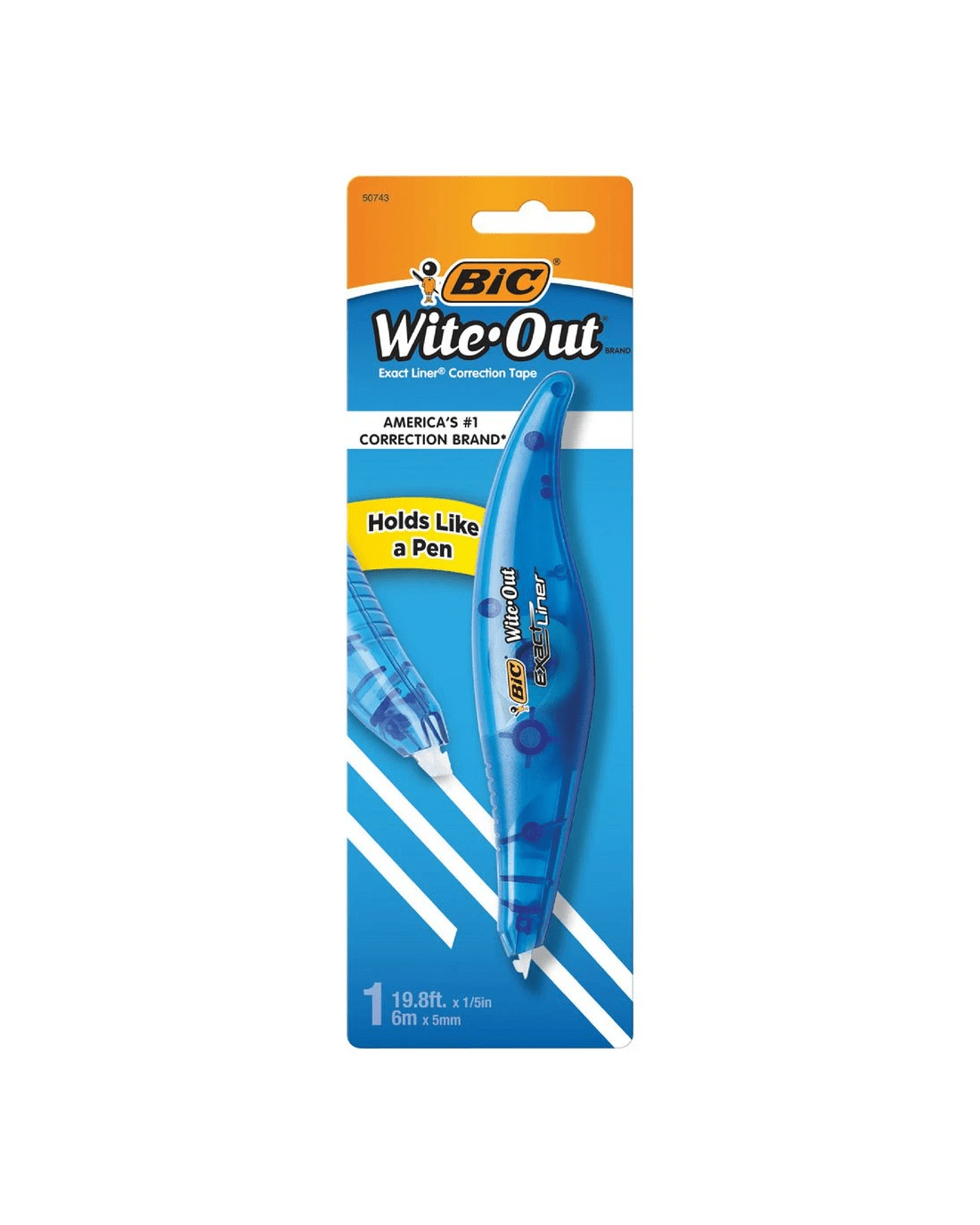 Enjoy effortless control and precision with this BIC Wite-Out Exact Liner Correction Tape. It has a curved, pen-shaped dispenser that is easy to grip. Plus, it contains 6 m of white correction tape for instant touch-ups.