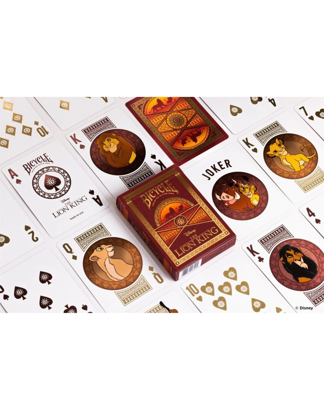Become the king of game night with Disney Lion King Inspired Playing Cards by Bicycle! Shimmering cold-foil ignites the tuck, card faces and card backs to shine like a savannah sunset, while the legendary lions of Pride Rock grace the court cards with their royal elegance. You'll have no worries with the Hakuna Matata ace of spades in your hand!